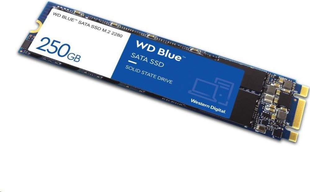 WD 250 GB M.2 SATA 6Gb/s 3D TLC pro tvorbu obsahu pro vyvážený výkon bez otáček ot./min pro lehké zápisy WD Blue 4.8 g M.2 2280 modré 555 MB/s 440 MB/s 100.0 TB 1750000 hodiny