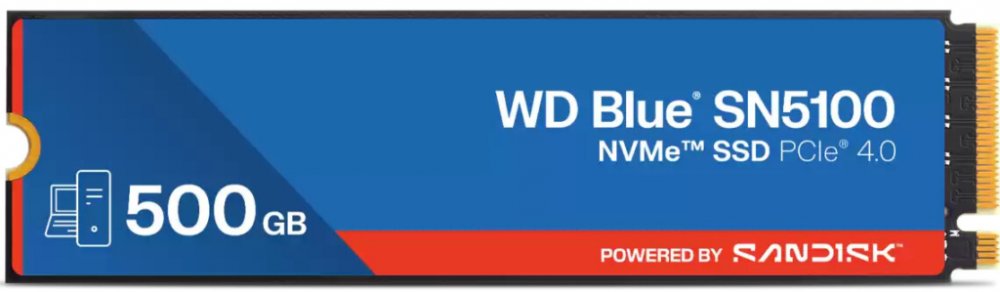WD 500 GB M.2 PCIe 4.0 x4 NVMe 3D TLC pro tvorbu obsahu pro špičkový výkon se střední výdrží WD Blue SN5100 5.7 g M.2 2280 modré 6600 MB/s 5600 MB/s 660000 IOPS 1100000 IOPS 300.0 TBW