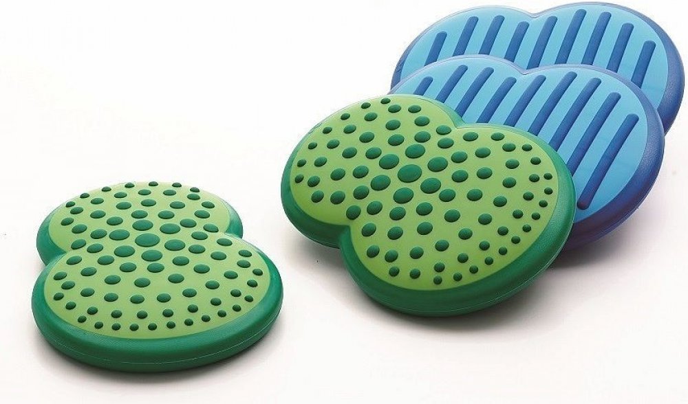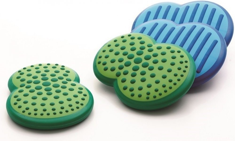 Obláčky - balanční podložky mají jednu stranu tvrdou a druhou stranu měkkou. Jsou tedy mírně nestabilní a umožňují procvičování dynamické rovnováhy. Měkká strana balančních obláčků má protiskluzový povrch a dva vzory - tečky a proužky (stimulace plosky nohy). Obláčky jsou opatřeny jehlovým ventilkem k regulaci tlaku vzduchu. Balanční podložky obláčky lze kombinovat s Nášlapnou dráhou KT0009 a Říčními kameny KT0008. Záleží pouze na Vás jakou si vytvoříte sestavu pro koordinační cvičení či pro různé didaktické hry.