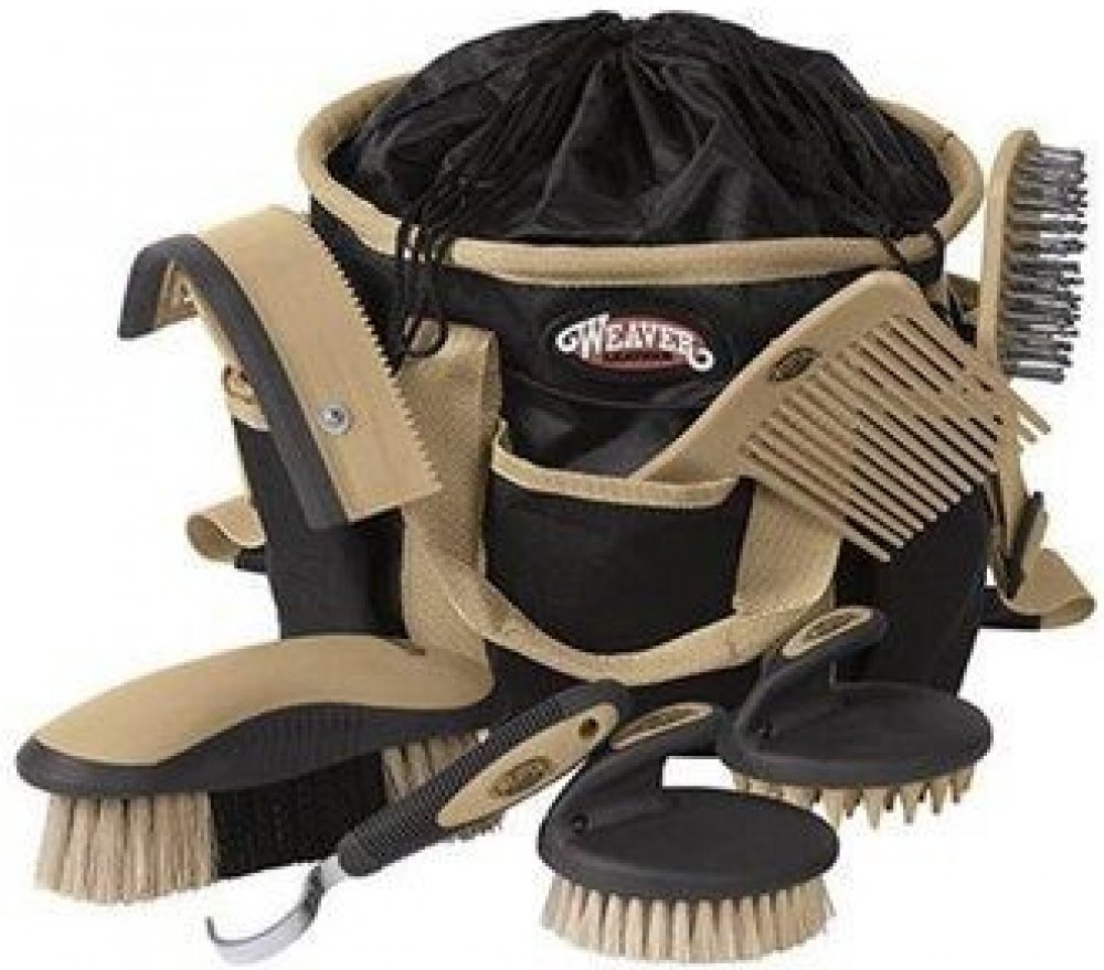 Sada čištění pro koně s praktickou taškou přes rameno.