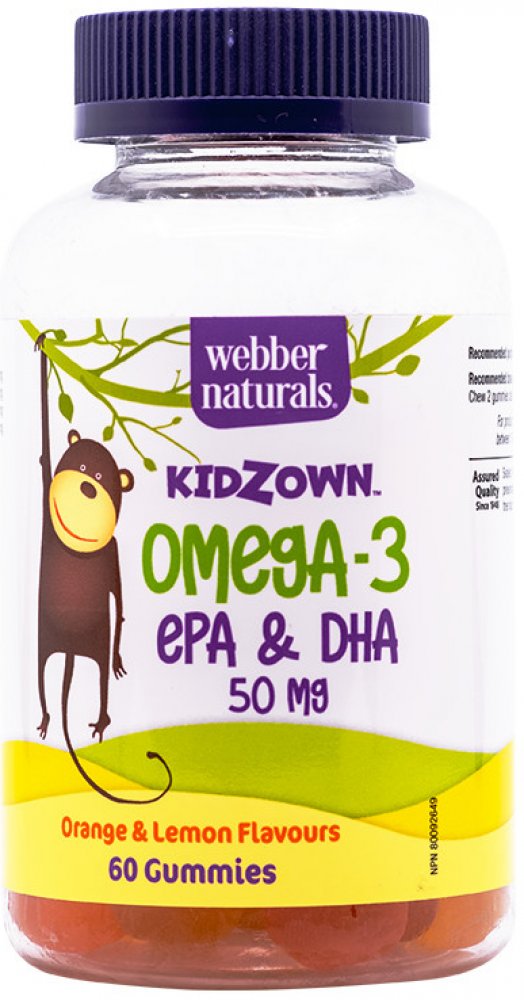 Webber Naturals KidZown Omega-3 50 mg je doplněk stravy určený pro děti a dospívající starší 4 let s obsahem rybího oleje. Rybí olej je zdrojem omega-3 mastných kyselin EPA a DHA.