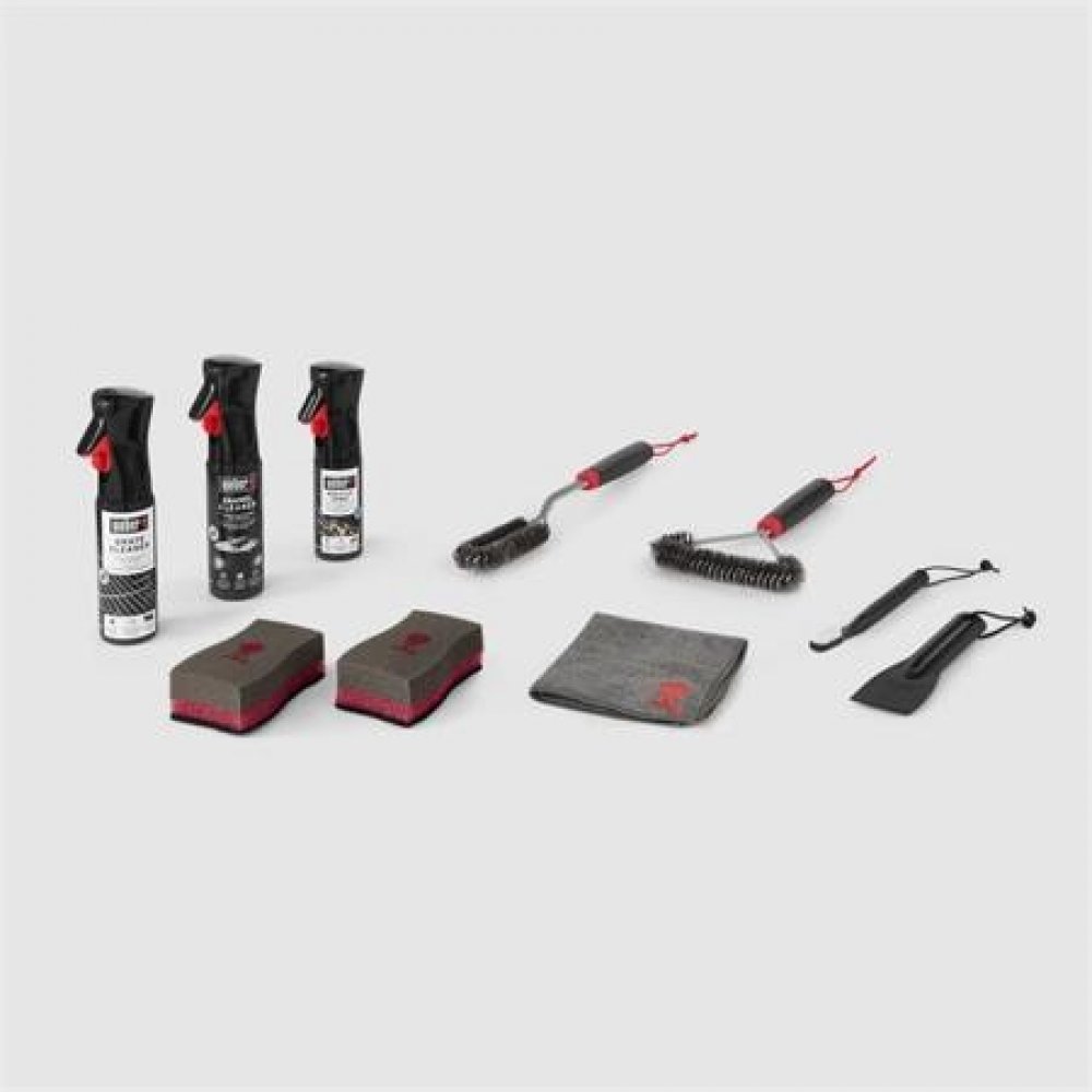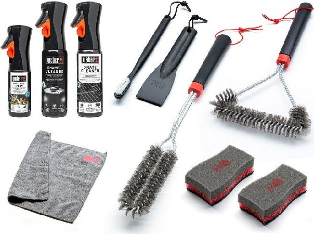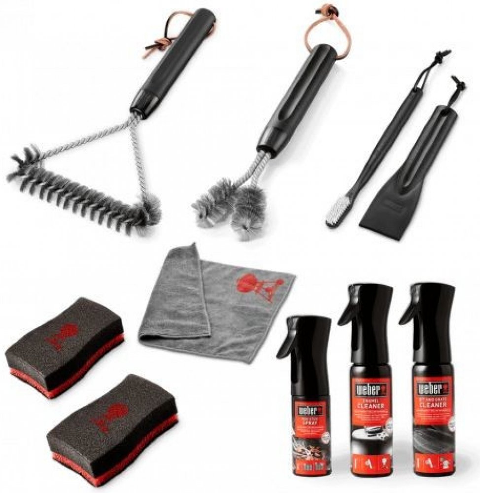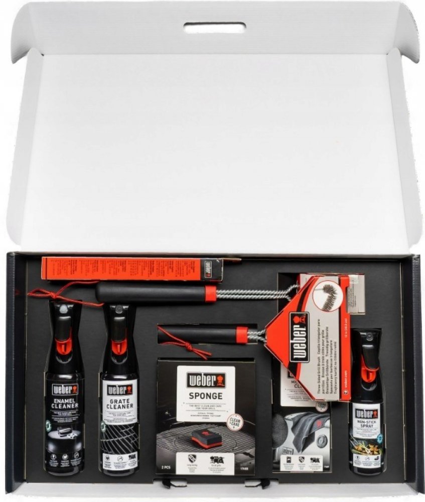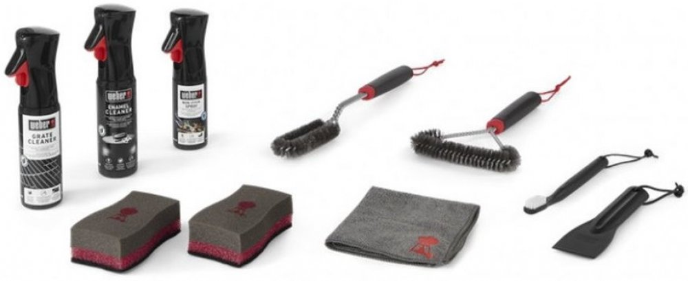 Ošetřujte svůj gril s trochou péče a lásky, a bude po mnoho sezón vypadat i grilovat jako nový. Důkladné čištění čas od času může dělat divy a zajistí nejen úžas, ale také bezpečnost a optimální rozvod tepla. V sadě na čištění speciálně vyráběné pro smaltované plynové grily Weber® dostanete všechny nástroje potřebné pro udržení vašeho grilu v plném lesku a funkčnosti. Obsahuje kartáče, čistící prostředky, houbičku, hadřík a sprej na promazání roštů.