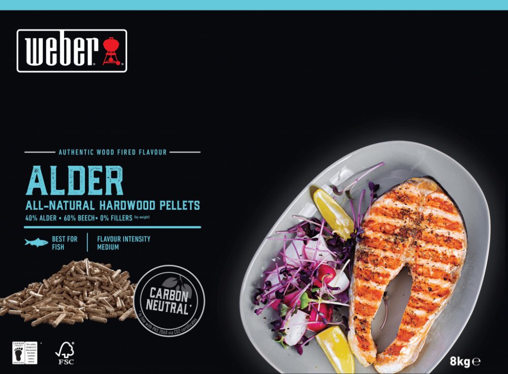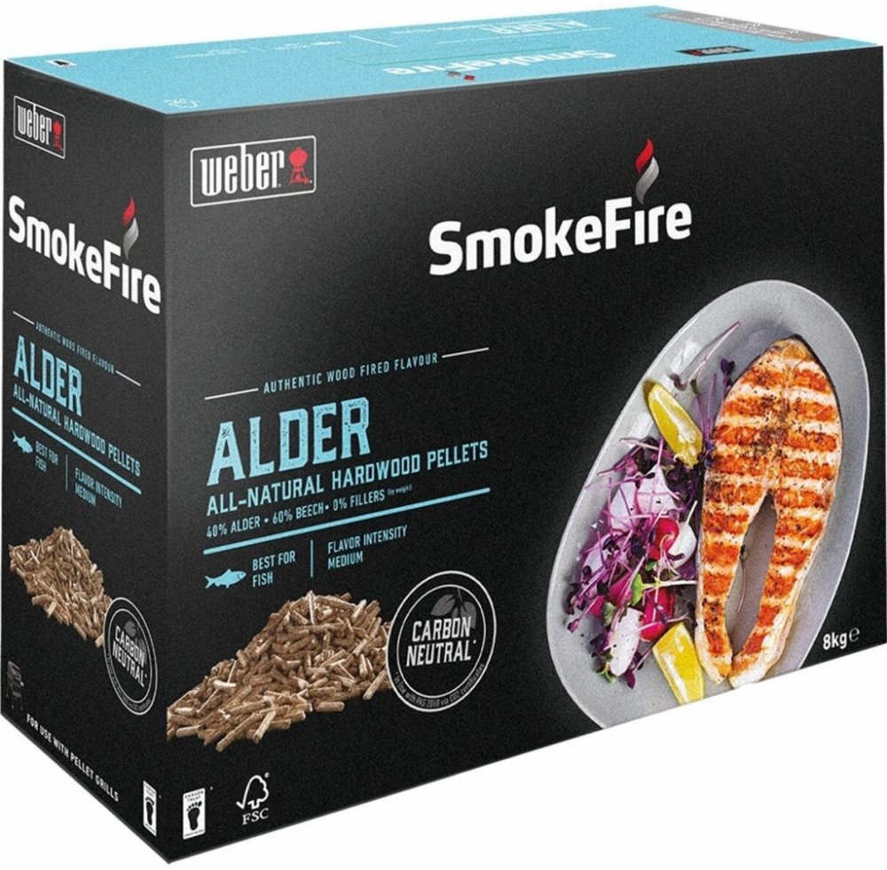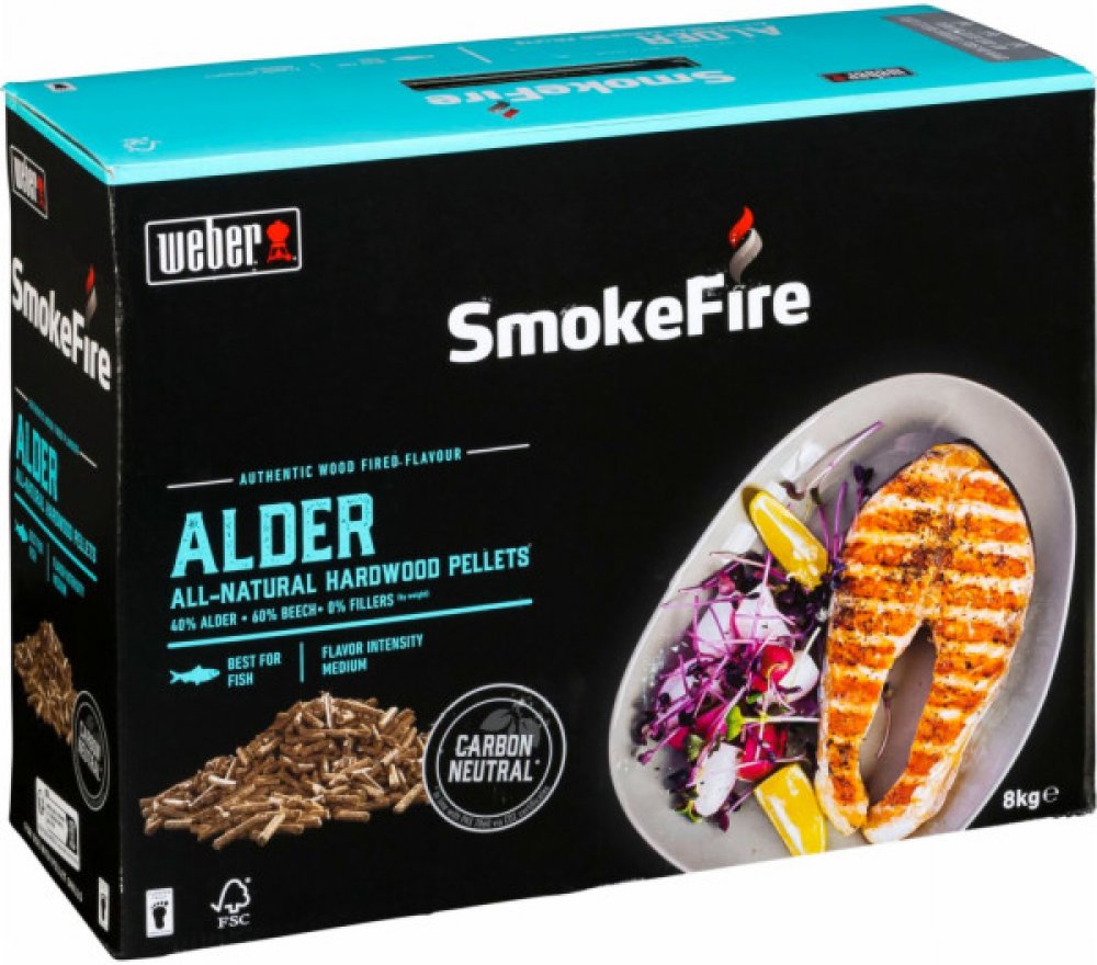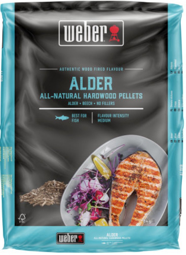 Přírodní pelety z olše a bukového dřeva, určené pro použití v peletových grilech Weber SmokeFire. Pelety byly pečlivě vyrobeny tak, aby dodaly grilovanému pokrmu co nejlepší chuť. Zvýrazňují chuť Vašeho jídla bez potřeby dalších přísad - pouze jedinečná chuť jídla grilovaného na dřevě.