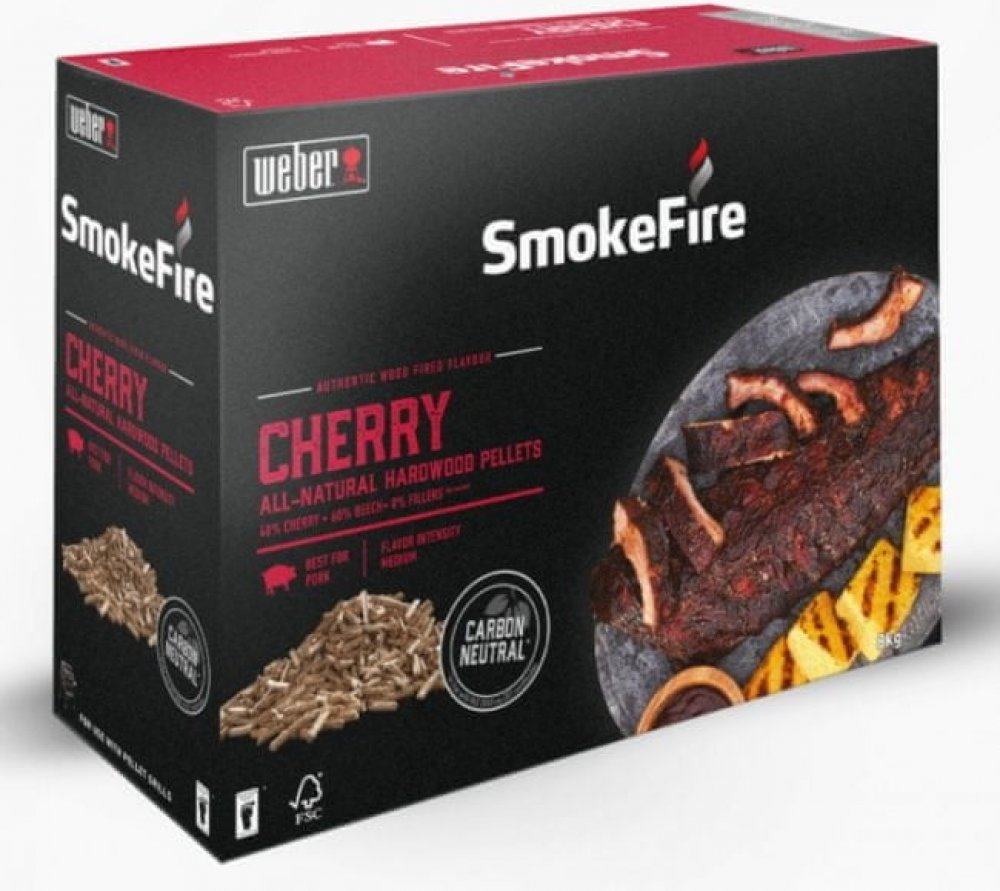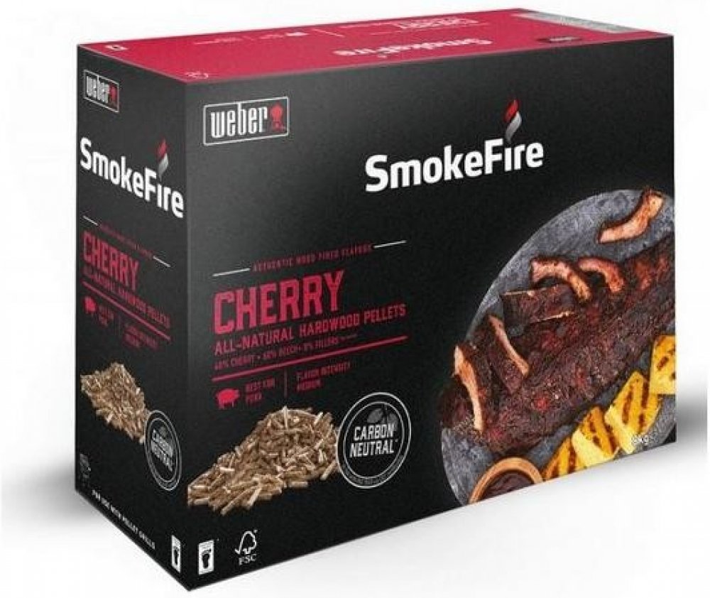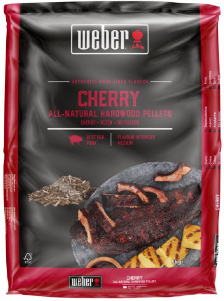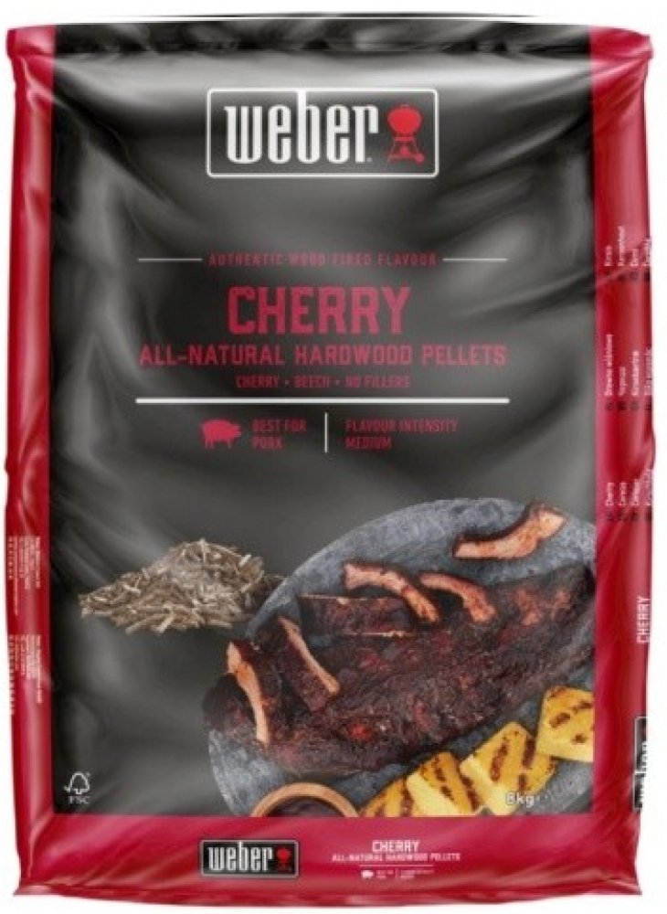 Přírodní pelety z třešňového a bukového dřeva, určené pro použití v peletových grilech Weber SmokeFire. Pelety byly pečlivě vyrobeny tak, aby dodaly grilovanému pokrmu co nejlepší chuť. Zvýrazňují chuť Vašeho jídla bez potřeby dalších přísad - pouze jedinečná chuť jídla grilovaného na dřevě.