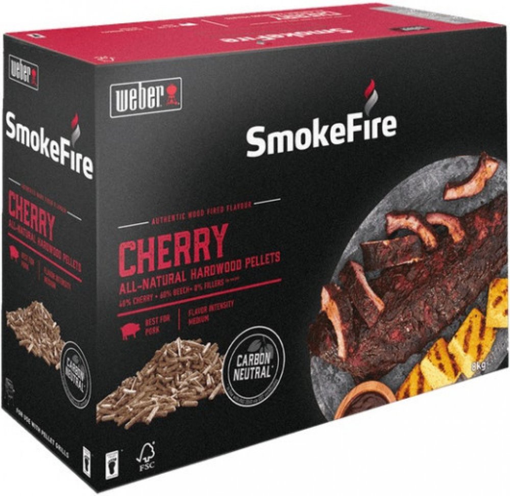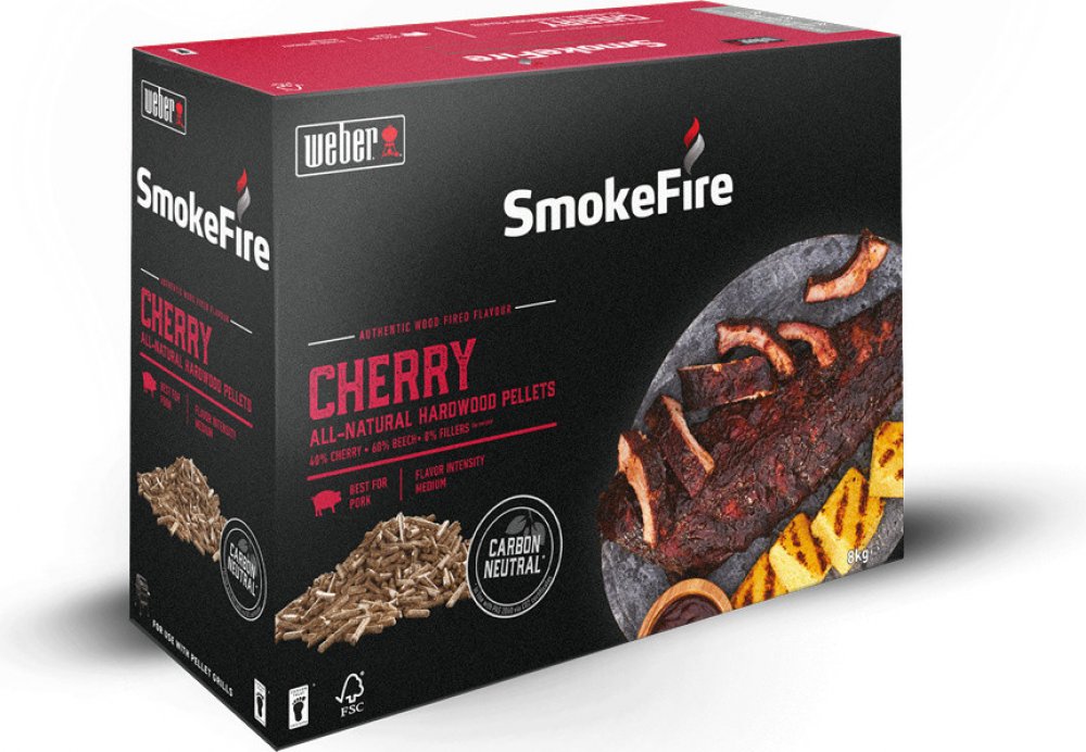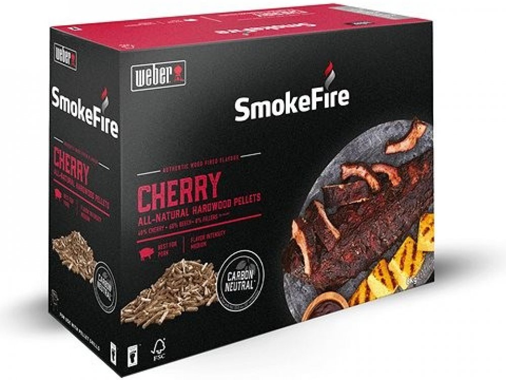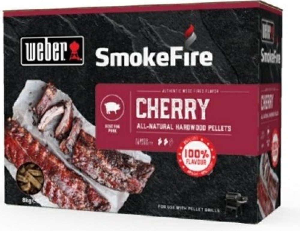 Přírodní pelety z třešňového a bukového dřeva, určené pro použití v peletových grilech Weber SmokeFire. Pelety byly pečlivě vyrobeny tak, aby dodaly grilovanému pokrmu co nejlepší chuť. Zvýrazňují chuť Vašeho jídla bez potřeby dalších přísad - pouze jedinečná chuť jídla grilovaného na dřevě.