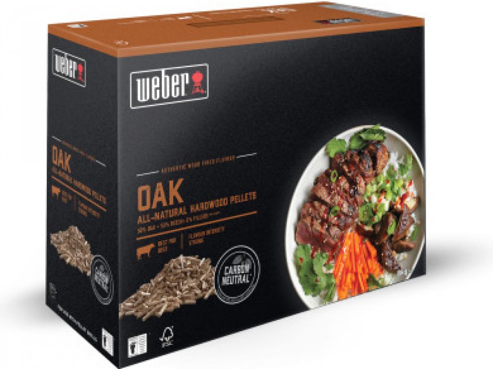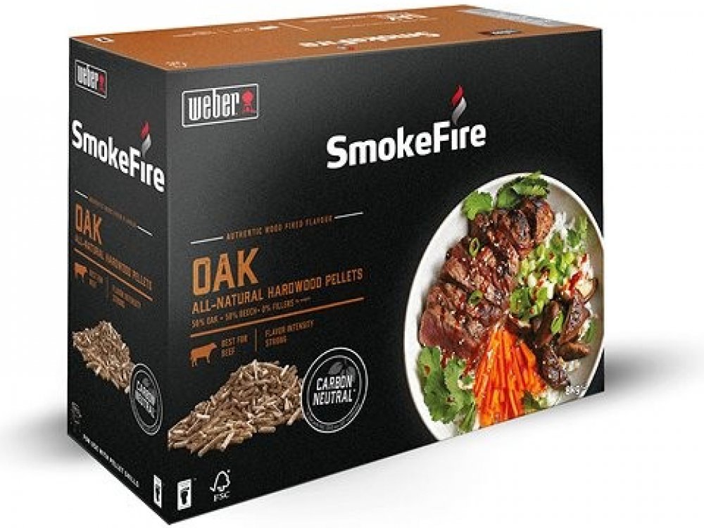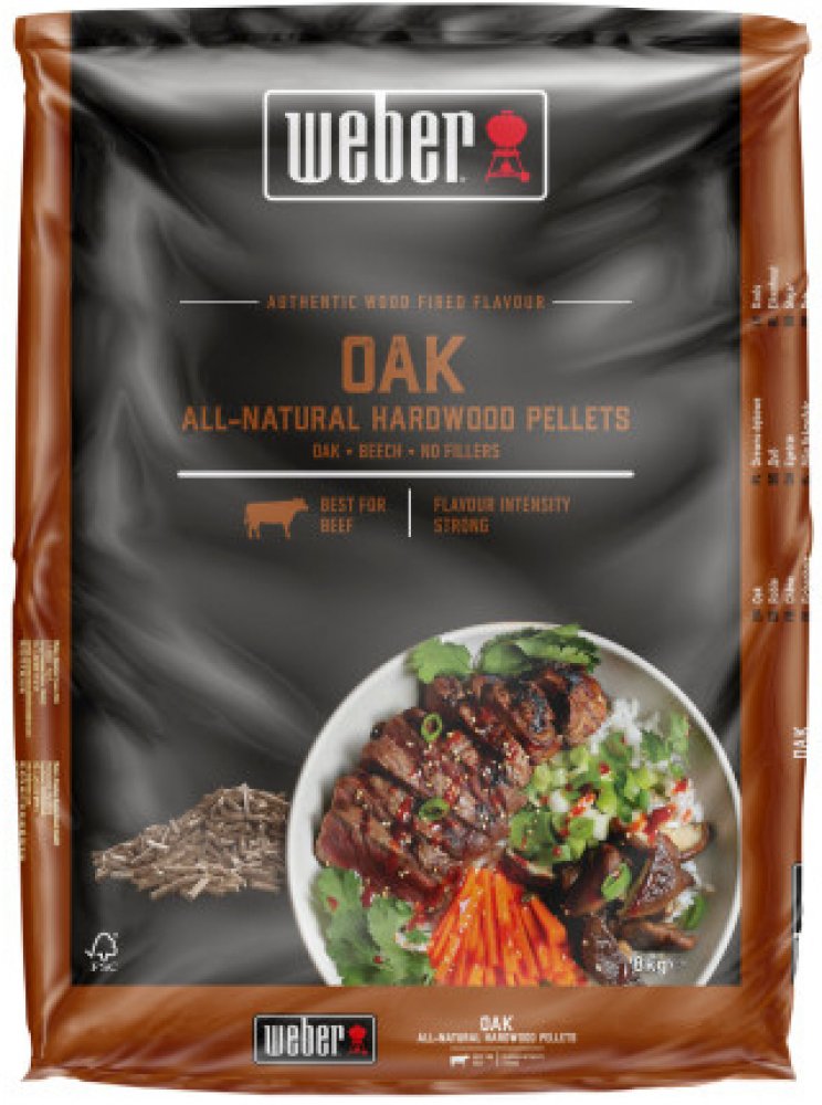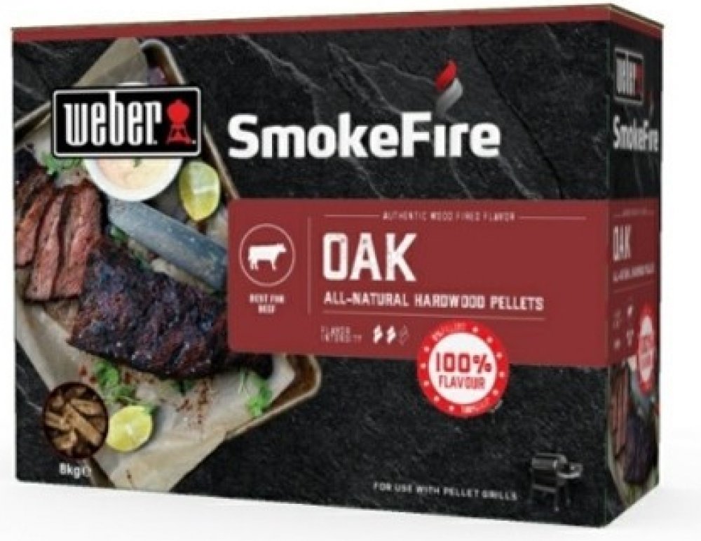 Toto kvalitní palivo pro všechny peletové grily Weber SmokeFire je vyrobeno z tvrdého dřeva a jeho účelem je především dodat Vašim grilovaným pokrmům dokonalou chuť. Hodí se skvěle pro uzení i ke grilování, Váš gril SmokeFire množství paliva dávkuje automaticky dle nastavené teploty, aby vždy vytvořil perfektní aroma i lahodnou chuť. Pelety jsou ze 100% přírodního, kvalitního dřeva, neobsahují žádné umělé přísady. Dřevo pochází z FSC certifikovaných udržitelných lesů a produkt je uhlíkově neutrální. Jedno balení má 8 kg pelet. Weber má v nabídce několik druhů a chutí, zde se jedná o pelety ze směsi dubu. Má silné, voňavé a sladké uzené aroma. Je doporučena obzvlášť na grilování hovězího. Pelety jsou zabaleny v pevném kartónu, ve kterém je lze kompaktně skladovat. Součástí kartónu je i ucho pro snadnou manipulaci s krabicí. Pelety jsou vyrobeny v EU. Kromě grilů Weber SmokeFire tyto pelety můžete použít i u jiných peletových grilů.