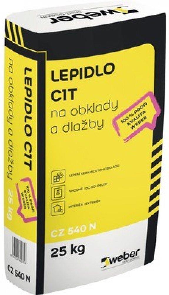 WEBER CZ 540N je mrazuvzdorné cementové lepidlo na bázi anorganického pojiva, plniva a modifikujících přísad, určené pro lepení obkladů a dlažeb.