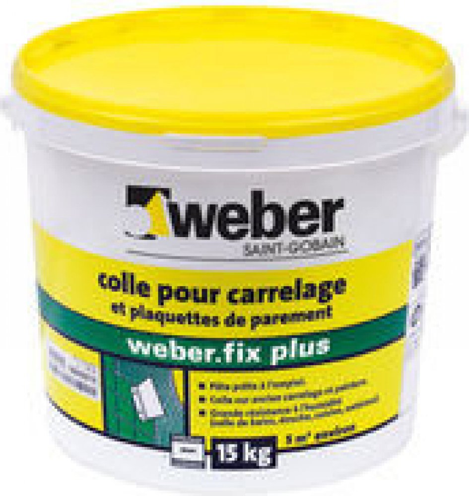 Použití: Weber fix plus k pokládce obkladů, přírodního kamene malých rozměrů, velkých rozměrů na vnitřní zdi. Na nové a starší podklady. Na vnější zdi možno použít tmel max. na rozměry 10 × 15 cm do výšky soklů.