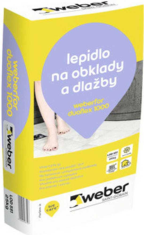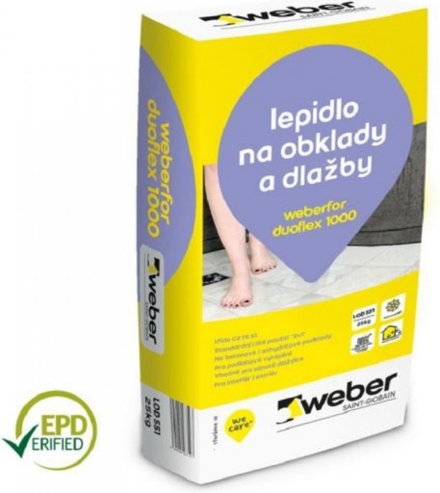 Použití: Weber for duoflex 1000 je určen k lepení velkoformátových keramických obkladů a dlažeb a formátů nestandartních rozměrů jako např. 150 × 1000 mm. Produkt lze využít na lodžie a balkóny do rozměrů dlažby 40 × 40 cm, k lepení skleněných tvárnic, na podklady se zabudovaným podlahovým vytápěním a vlhkých provozech. Nedoporučuje se na kovy, barevné nátěry, gumové povrchy. Lepidlo odolává síranové korozi při použití na anhydritových podkladech a podkladech ze sádry.