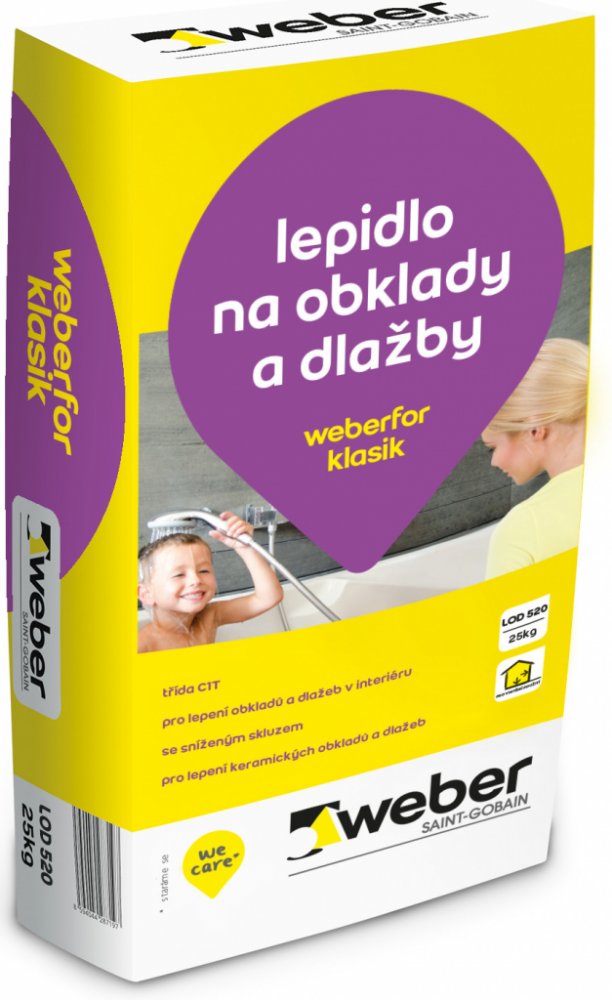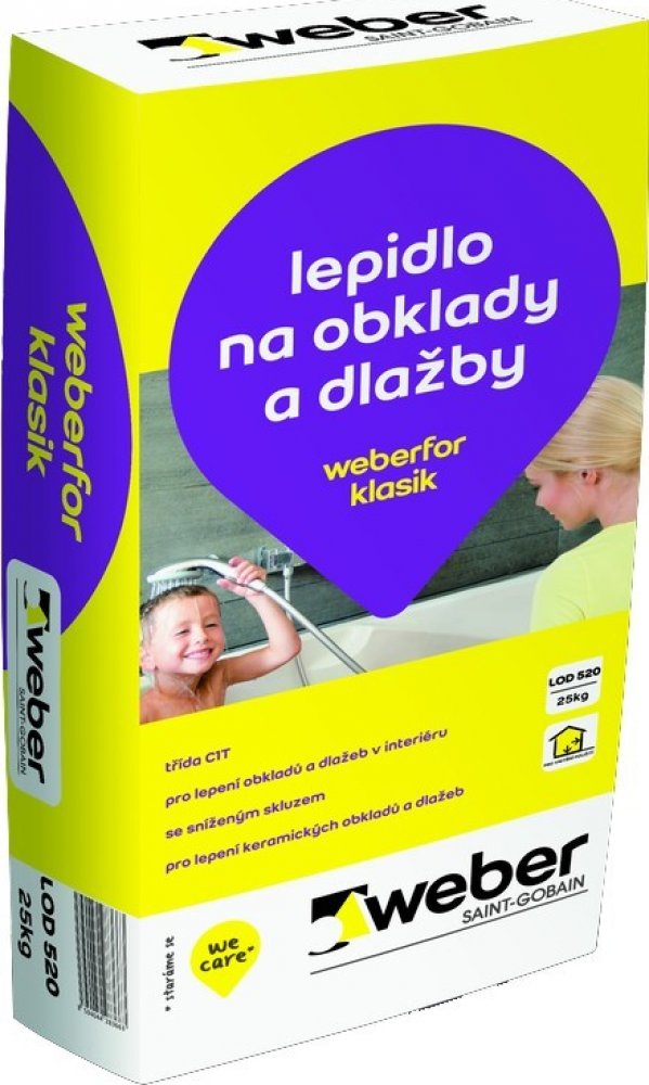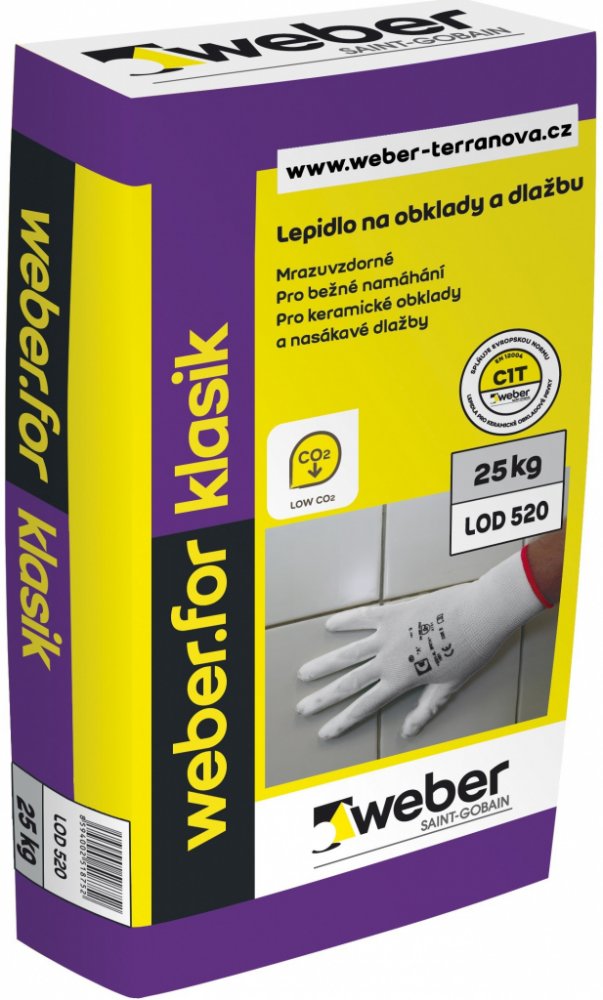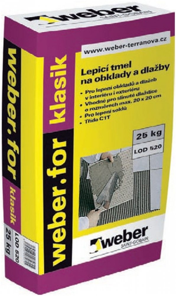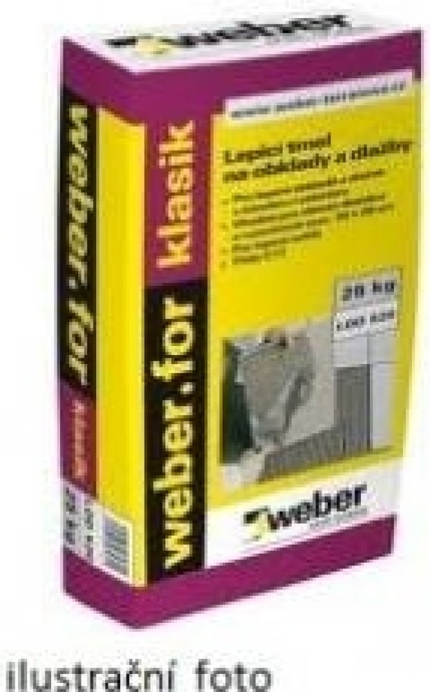 Použití: Weber.for Klasik pro minerální podklady, jako vápenocementové omítky a beton. Podlahy ve vlhkých provozech. K lepení keramických obkladů a nasákavých dlažeb do rozměrů 20 × 20 cm. Nedoporučuje se pro větší mechanické namáhání, na dřevo, štuky, kovy a barevné nátěry