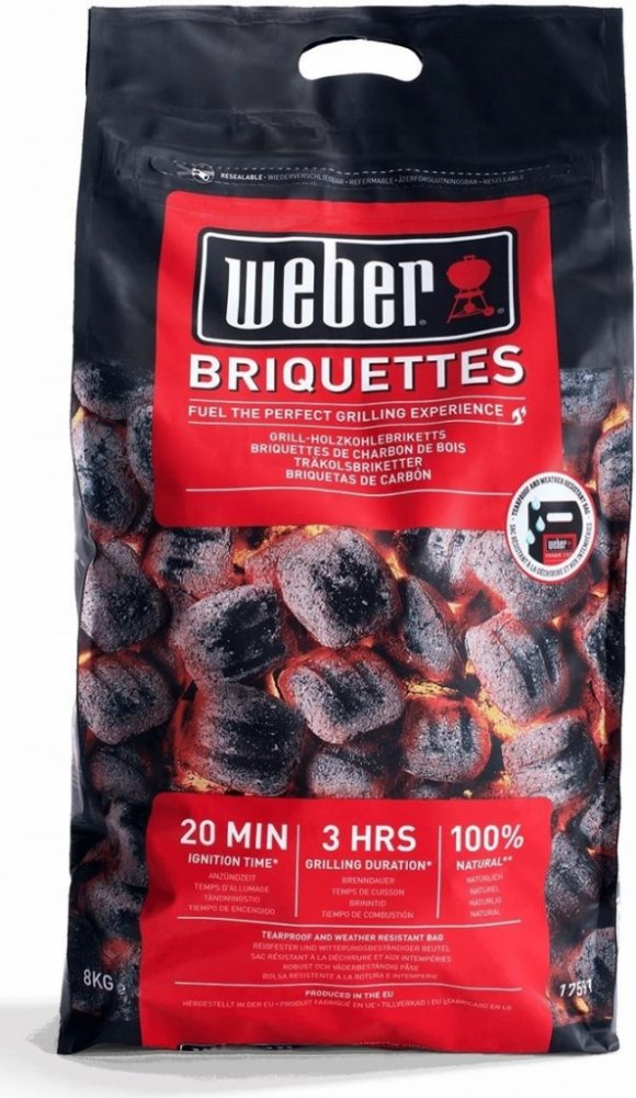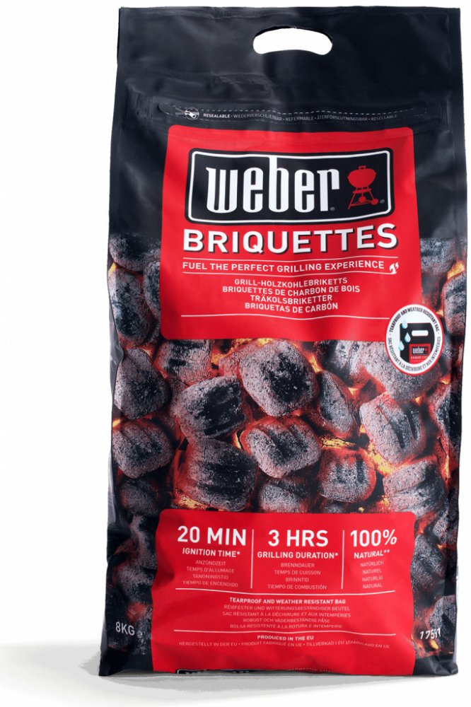Tyto vysoce kvalitní brikety od Webera mají speciální složení (a jsou lisovány pod extra vysokým tlakem), které zaručuje dlouhé hoření a rovnoměrný žár a díky odborné výrobě se rožhaví do 20 minut. Vysoký žár si udrží minimálně 3 hodiny (ale z našich kurzů grilování máme takovou zkušenost, že vydrží i o několik hodin déle) a Vy tak můžete dlouho nerušeně grilovat, aniž byste museli přikládat palivo. Brikety jsou ideální pro přímé i nepřímé grilování a vhodné pro všechny grily na dřevěné uhlí. Brikety jsou baleny po osmi kilogramech v kvalitním nepromokavém obalu. Balení nepromokne, ani když jej ponoříte do vody. Nemusíte se tak bát, že by Vaše brikety navlhly. K tomu nedojde za žádných podmínek a Vy tak budete vždy připraveni ke grilování. V poradně jsme pro vás sepsali i jaký je rozdíl mezi grilovacími briketami a dřevěným uhlím a přehledný postup jak snadno rozžhavit brikety. Vlastnosti grilovacích briket Weber: Vyrobeny z přírodních materiálů (dřevěné uhlí) Lisovány pod tlakem 50 tun (neobsahují chemická pojiva) Rozžhaví se do 20 minut Stabilní výhřevnost a rovnoměrný žár mají minimálně po 3 hodiny Vhodné pro všechny způsoby grilování - přímé, nepřímé i metodu Low & Slow Zabaleny v kvalitním nepromokavém obalu
