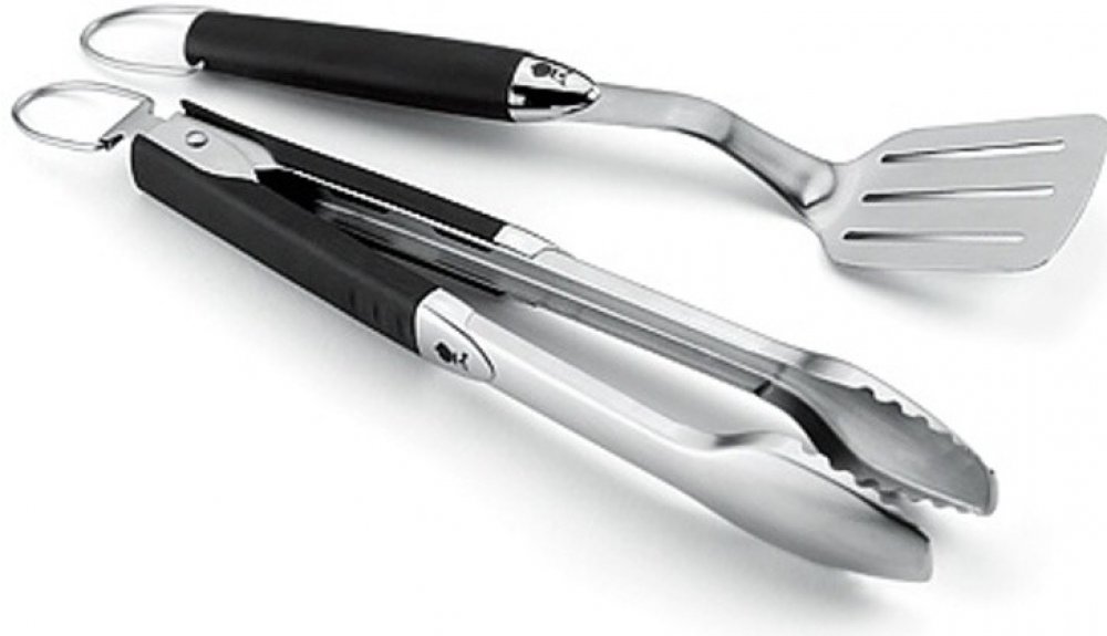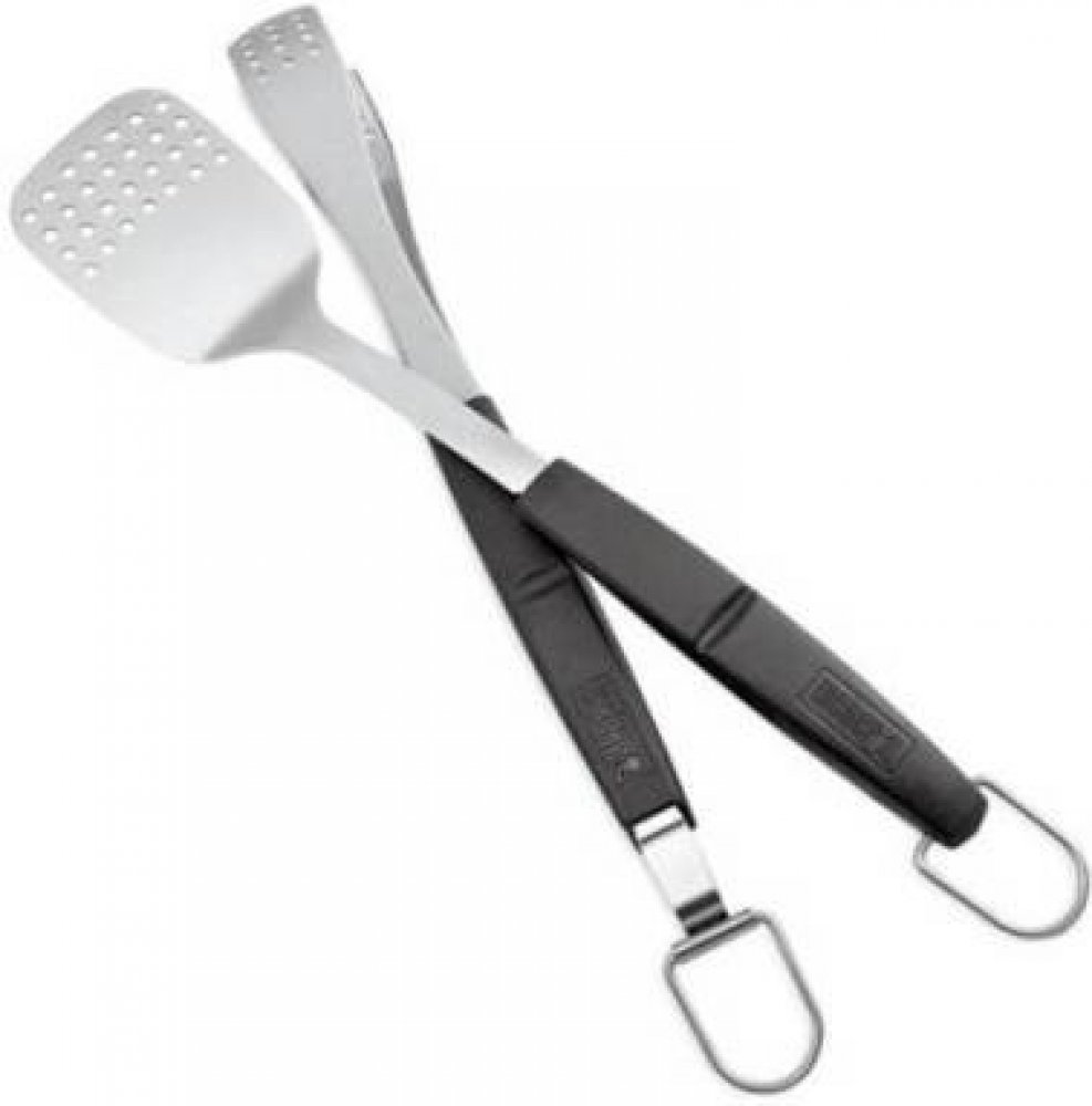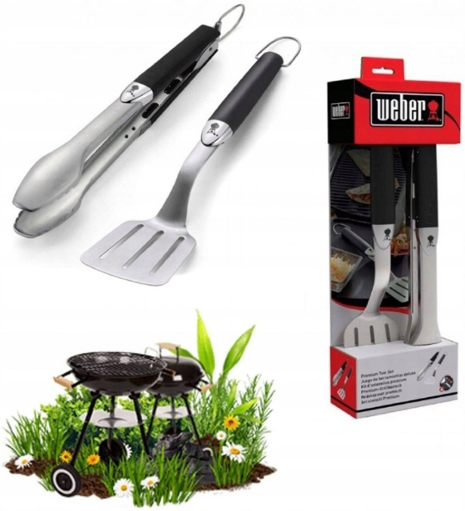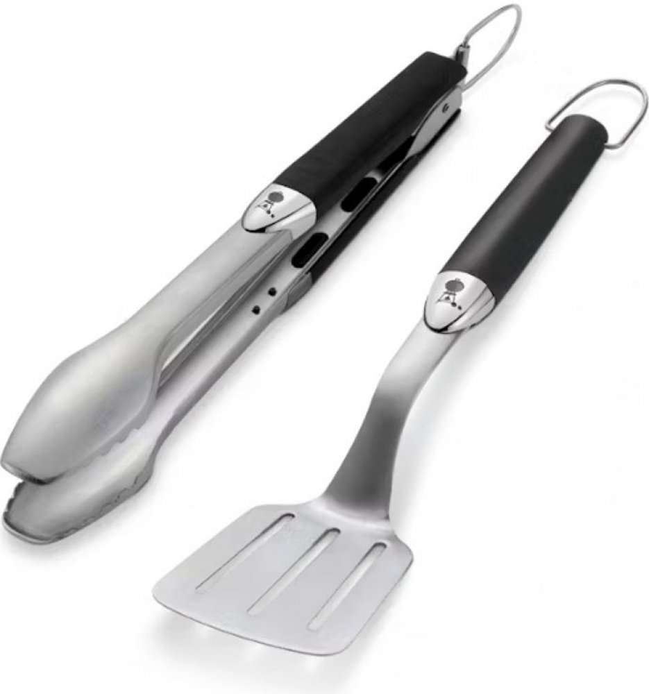 Rukojeť je v černé barvě. Stejně jako všechny ostatní výrobky Weber jej charakterizuje velmi vysoká kvalita. Grilovací sada je vhodná pro všechny grily Weber a lze ji mýt v myčce na nádobí.V setu se nachází praktická obracečka a kleště na Vámi připravované pokrmy. Náčiní má na konci rukojeti háčky pro zavěšení.