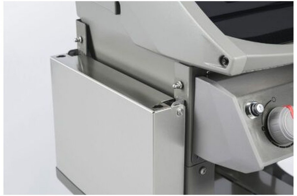 - Levý boční pultík lze sklopit, takže gril zabírá ještě míň místa než normálně