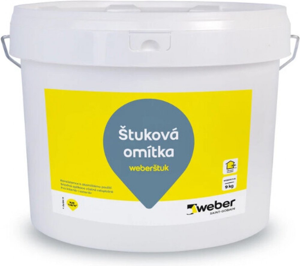 Popis a použití: Weber štuková omítka je určena pro vytvoření štukového povrchu na jádrových omítkách nebo panelových stěnách bytových domů. Produkt je rovněž určená také k rekonstrukci starých omítek nebo na povrchy z pórobetonu, betonu a sádrokartonu. Zejména je štuková omítka vhodná pro rekonstrukci panelových bytů pro povrchové struktury sjednocení stěn a stropů. Na omítku lze aplikovat interiérové a fasádní barvy. Omítka je určena ke štukování vnitřních a vnějších stěn.