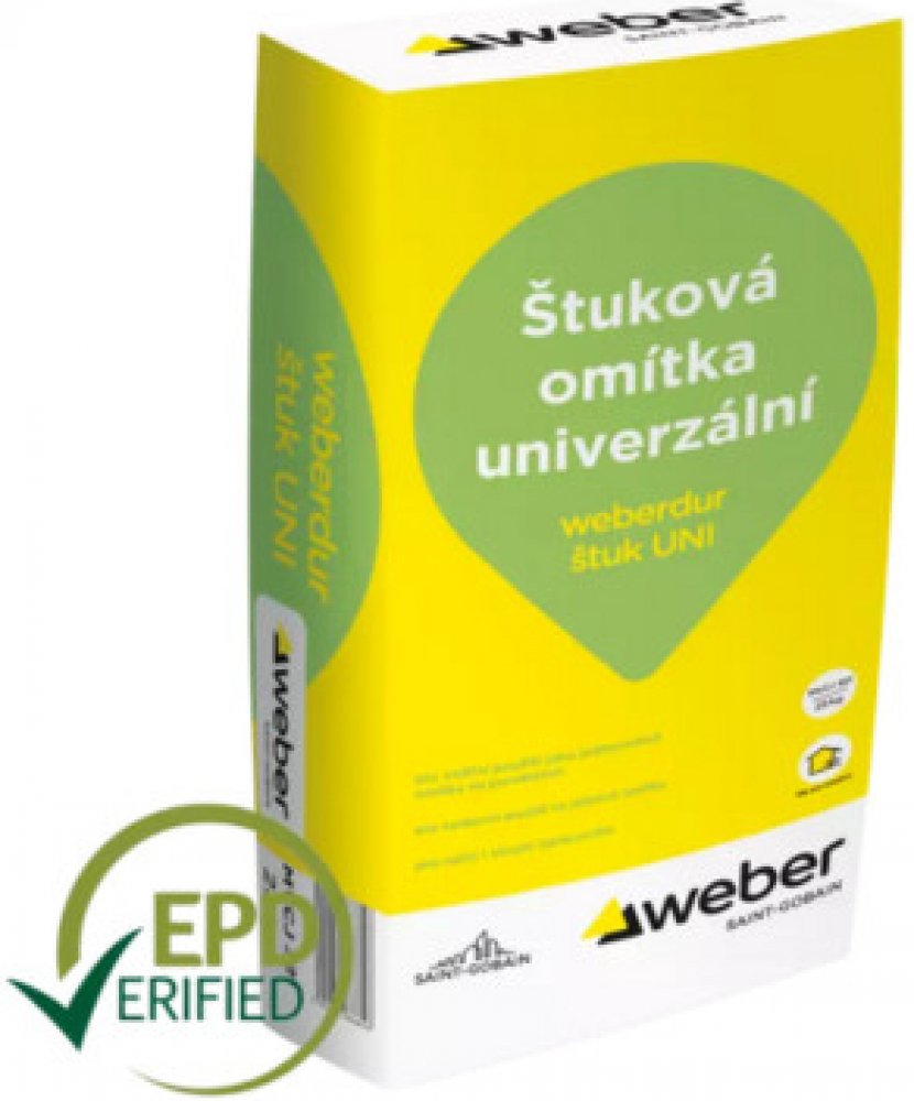 Suchá omítková směs na přesné zdivo, jádrové omítky, panely, beton. Suchá omítková směs pro ruční i strojní zpracování štukových omítek na přesné zdivo (Ytong), jádrové omítky, panely, beton. Je určena k provádění vnitřní jednovrstvé (2 kroky) štukové omítky. Aplikace strojem nebo ručně. Do max. tloušťky 5 mm. Při aplikaci na jádrové omítky (lze i pro venkovní použití) musí být tyto dostatečně vyzrálé. Při aplikaci z venkovní strany na pórobetonové zdivo musí být zdivo opatřeno postřikem + jádrovou omítkou před aplikací weberdur štuk UNI.