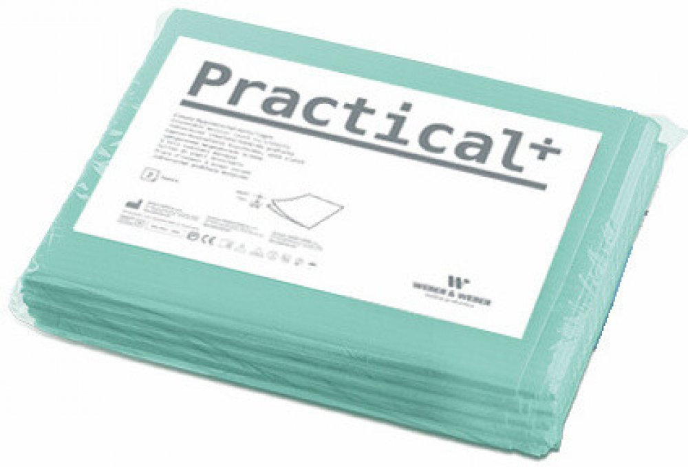 Nepropustné papírové vyšetřovací podložky Practical se skládají z jedné vrstvy buničiny, která umožňuje dostatečnou absorpci tekutin a polyetylénové fólie, která brání prosáknutí.