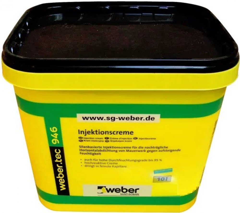 Hydrofobizující injektáž. Krémová injektáž. Krémová injektážní pasta. K dodatečné horizontální izolaci ve zdivu proti vzlínající vlhkosti pomocí beztlakové injektáže do vyvrtaných otvorů.