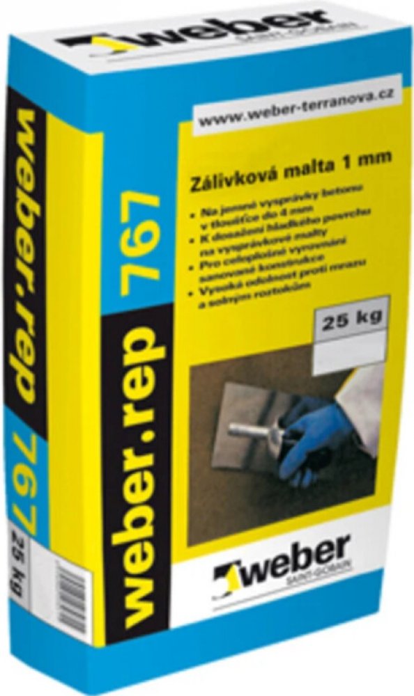 Použití: Weberrep 767 je cementová, zálivková malta určená k zalévání staticky a dynamicky vysoce namáhaných stavebních dílů, jako např. zabudované ocelové díly, betonové spáry, drážky, kotvící svorníky, závitové tyče, základové desky strojů, základové rámy, mostová ložiska, koleje pro jeřáby, zalévání prefabrikátů. Vhodná i pro předpjatý beton, též pro armovaný i nearmovaný beton.