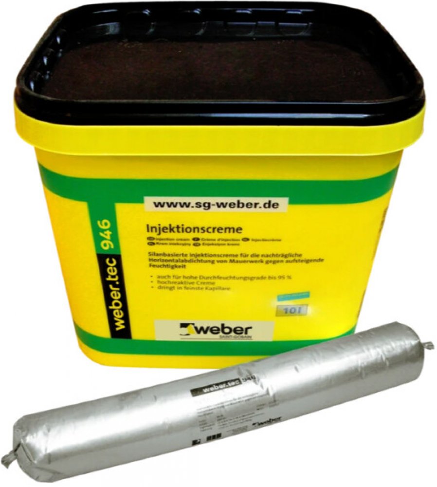 Popis produktu: Webertec 946 je vodnatá injektážní pasta na bázi silanu, která neobsahuje rozpouštědla. S oficiálním certifikátem podle předpisu WTA-4-4-04