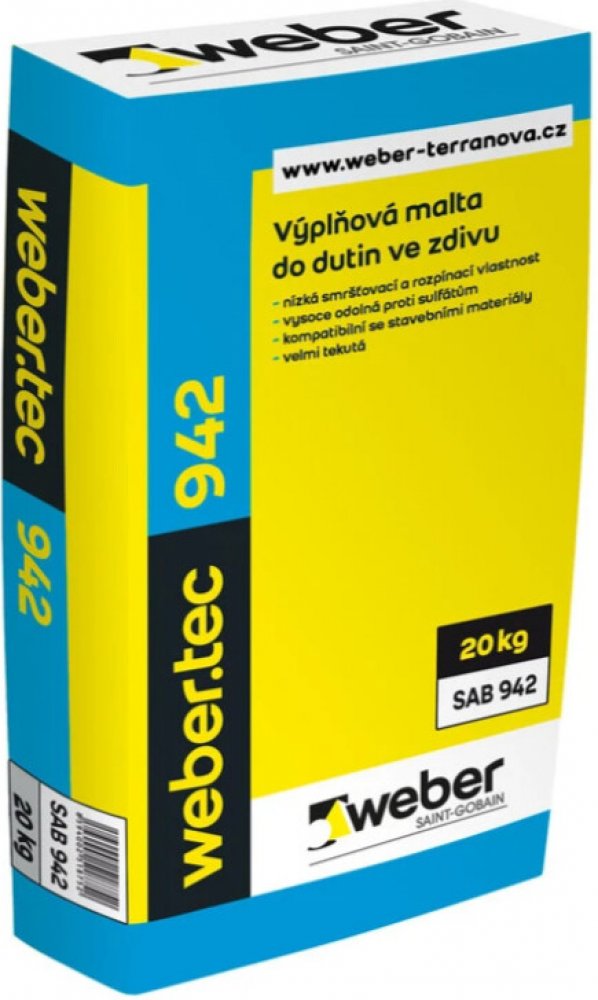 Popis produktu: Webertec 942 je průmyslově vyráběna, suchá maltova směs k vyplnění dutých mist ve zdivu, pojena cementem. Ve ztvrdlém stavu vykazuje velmi dobrou přilnavost k zdivu.