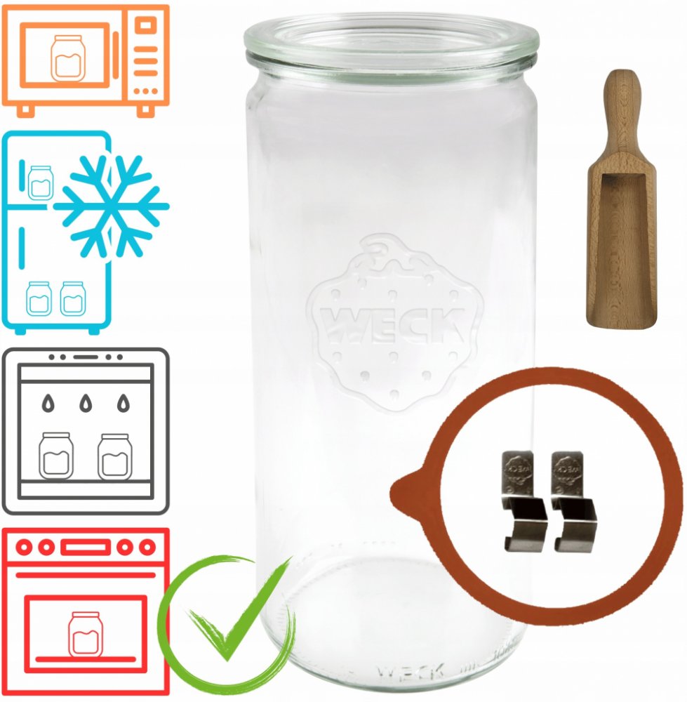Zavařovací Sklenice Weck 1l 1040ml okurky Cylinder odměrka sponky víko gumička 1ks