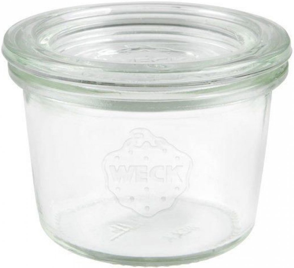 Originální Zavařovací sklenice plochá značky Weck Mini-Sturz 80 ml. Vyrobeno z čirého silnostěnného varného skla.
