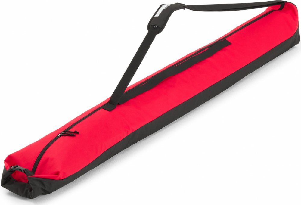 Chcete přenášet své lyžařské vybavení pohodlně? Tak to je tento vak vhodný na jeden pár lyží i s lyžařskými holemi určený právě pro vás. Délku vaku snadno přizpůsobíte lyžím díky systému Roll Top. Délku obalu lze díky systému Roll Top přizpůsobit délce lyží, stačí srolovat konec a zapnout přezku. Vzniklé ucho lze použít místo rukojeti k tažení obalu. Nastavitelný polstrovaný popruh umožňuje nosit obal i přes rameno. |Líc obalu je vyroben z polyesteru 600 denier s vysokou gramáží. Tento materiál prochází řadou testů, aby se ověřila jeho odolnost. Pro ověření těchto vlastností prochází materiál řadou testů. Vnitřní strana obalu je z polyetylenové látky, která odolá oděru a proříznutí. |Obal je určen na 1 pár lyží do délky 190 cm a na 1 pár hůlek. Obal měří 201 cm.|Obal lze celý srolovat. Díky praktické gumičce mezi kolečky je možné jej ve srolované pozici zafixovat, aby při skladování zabíral co nejméně místa. |Své osobní údaje si můžete zapsat na štítek na obalu.