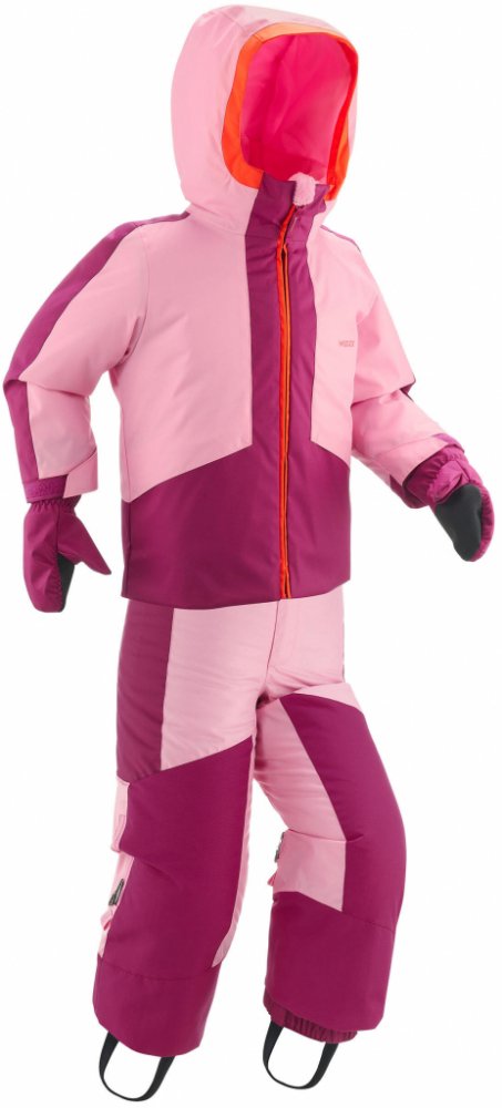 Hřejivé, nepromokavé a nastavitelné kalhoty s bundou (délka rukávů a nohavic) a palcovými rukavicemi – vše lze sepnout a vytvořit kombinézu, která chrání před chladem i vnikáním sněhu pod oblečení.