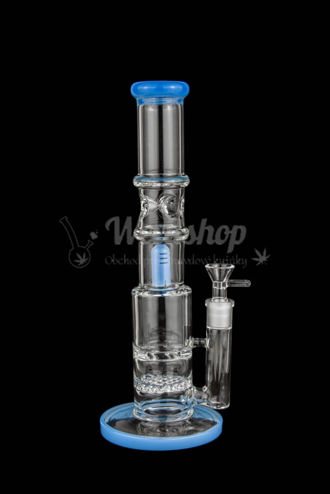 WeedShop Skleněný bong 30 cm se třemi perkolacemi Světle modrá