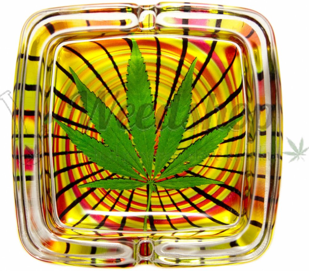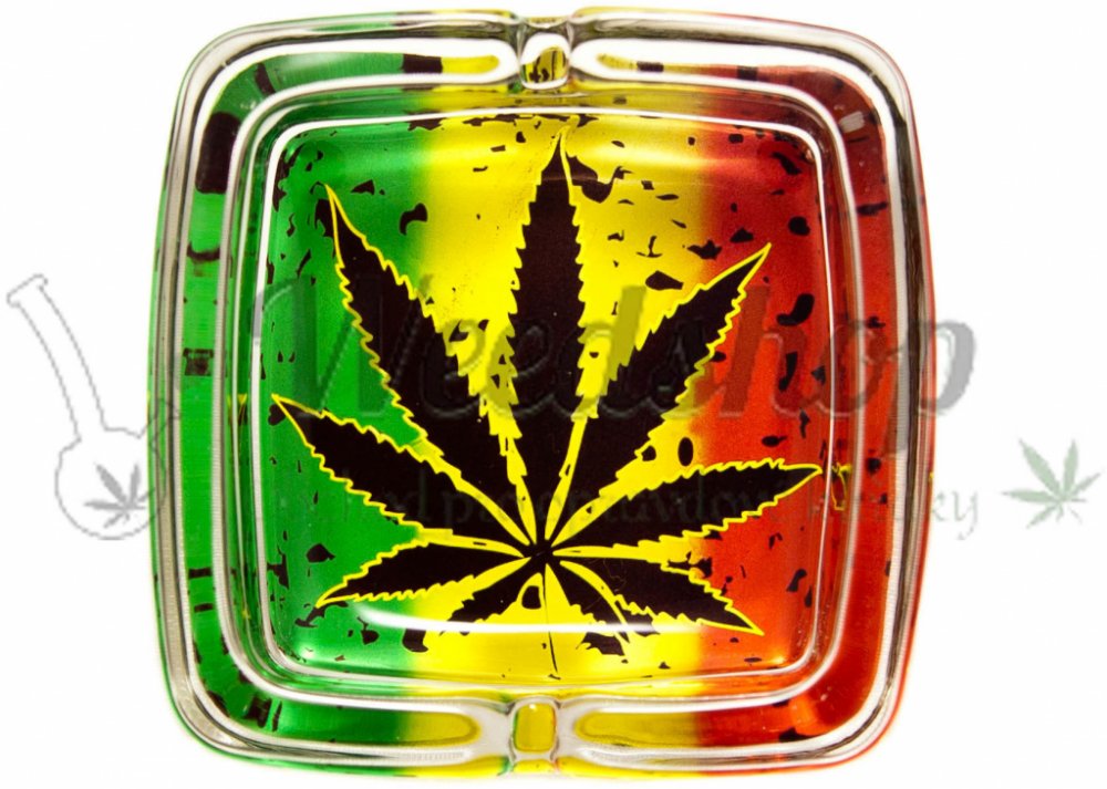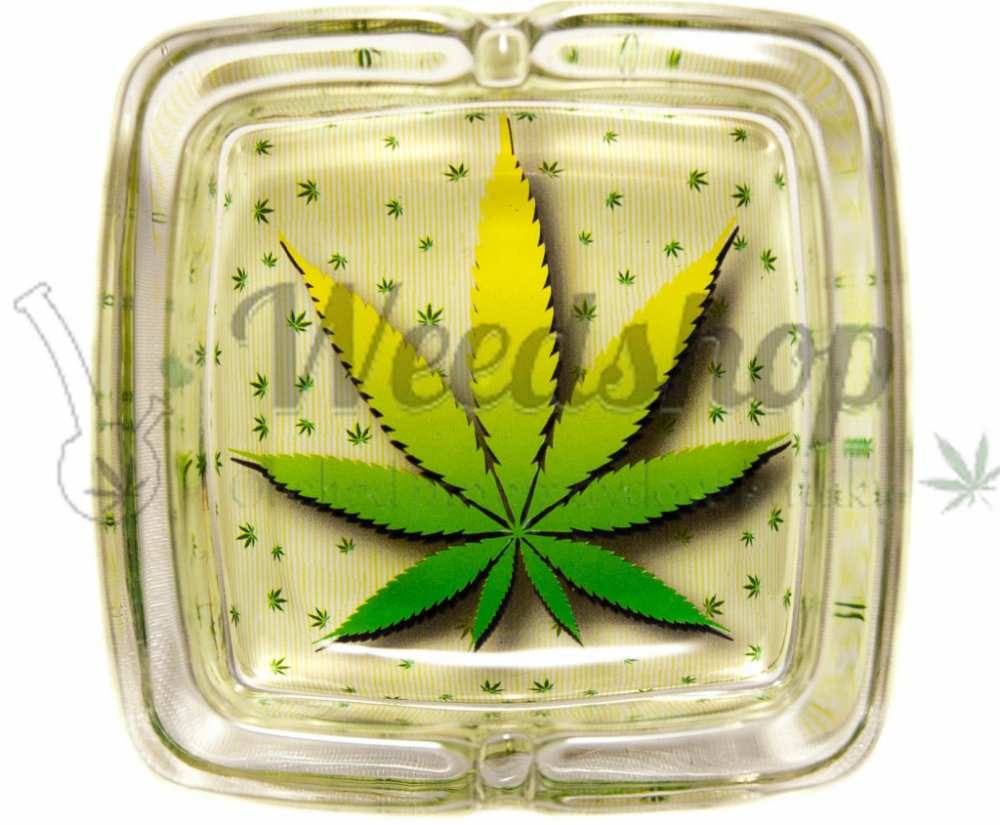WeedShop Skleněný popelník hranatý List konopí List rasta