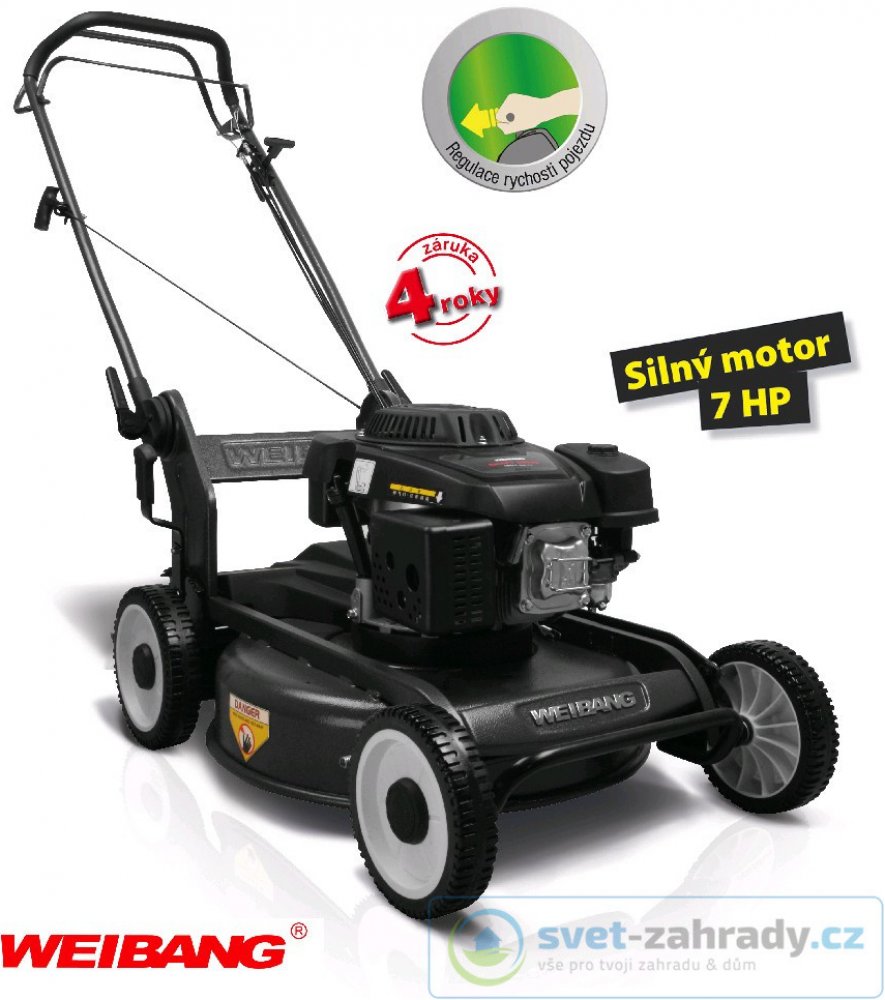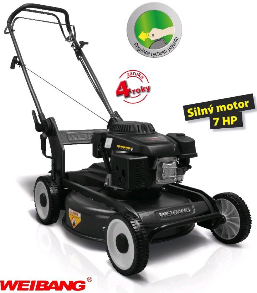 Weibang 5200 W 53 cm 4.4 km/h ocelové 45 kg s pojezdem benzínové rotační 1800 m2 čtyřtaktní 70 mm 1