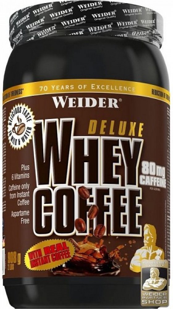 Weider Germany GmbH 908 g syrovátkové práškové 22.0 g 30.0 g 30 ks 113.0 kcal kofein, vitamíny, sladidla syrovátkový koncentrát, instantní káva, kávová příchuť 10.0 g/100 ml