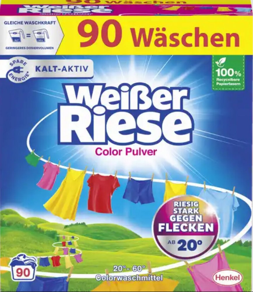 4.5 kg 90 praní Weiser Riese Henkel 20 °C v krabici se svěží vůní s výraznou vůní s enzymy