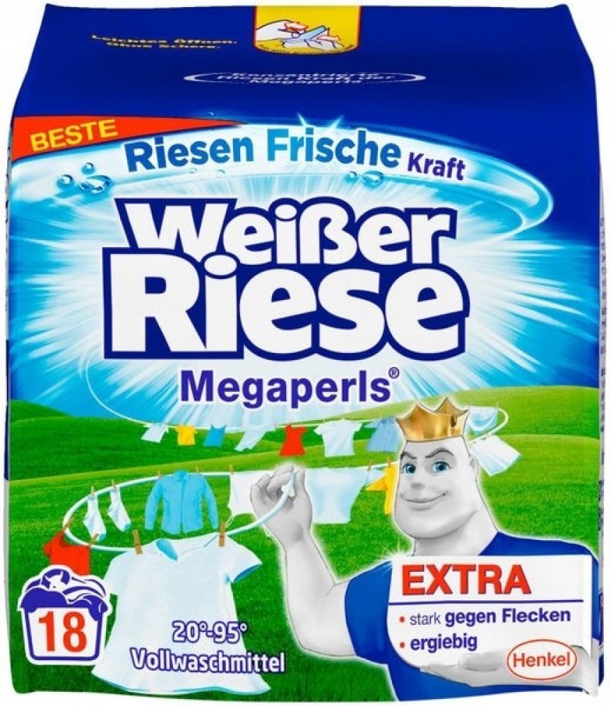 Německý Vysoce koncentrovaný univerzální prací prášek na bílé a stálobarevné prádlo s vysoce účinnou schopností odstraňování skvrn. Prací prášek od značky Weisser Riese je v Německu jeden z nejoblíbenějších díky své silné čistící schopnosti a krásné svěží vůni. Navíc obsahuje formuli Flecken-Detektiv, což je funkce, která odstraňuje i siln...