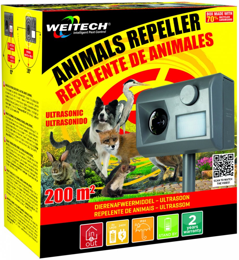 Plašič kun, koček, lišek, psů, a jiných toulavých zvířat WEITECH Garden Protector 3 WK 0055 na 200m2