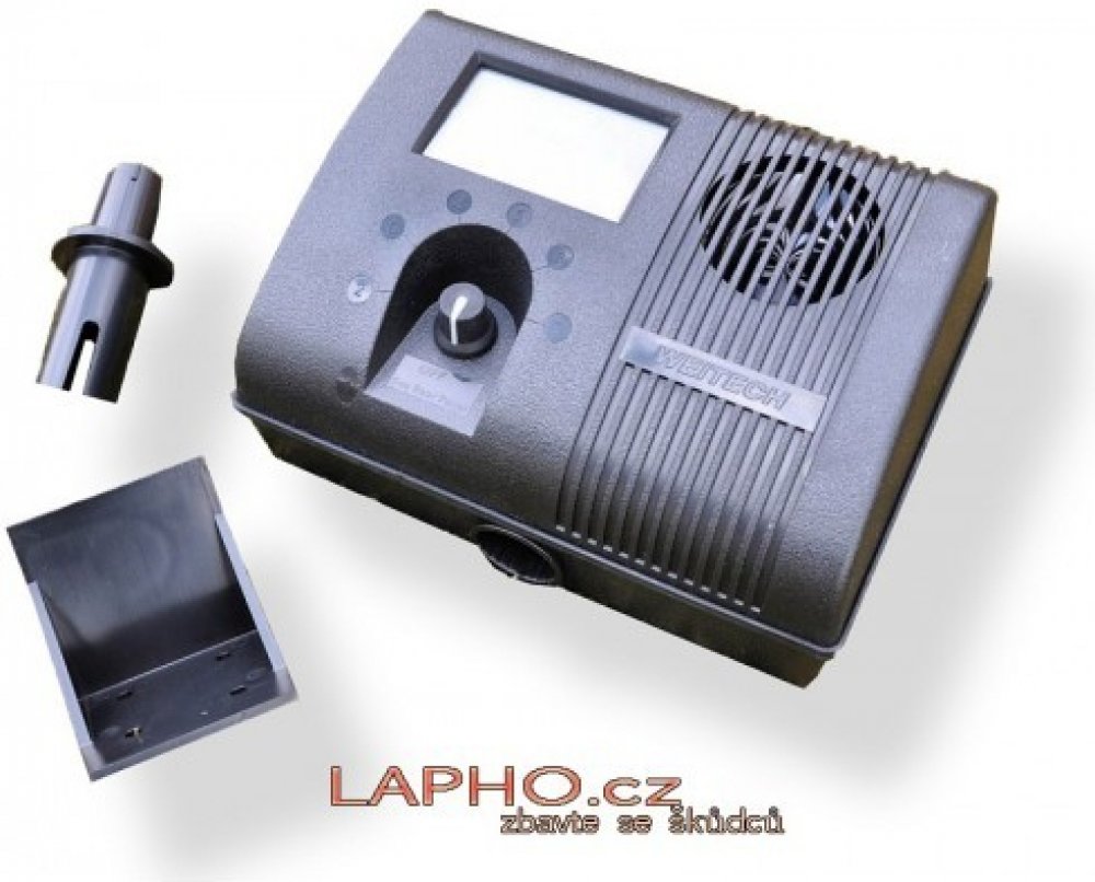 FUNKCE ZAHRADNÍHO PLAŠIČE WEITECH: Pohybové čidlo sepne ihned, jakmile se škůdce přiblíží na vzdálenost menší než 16m. Přístroj začne vysílat směs zvuků, kter...