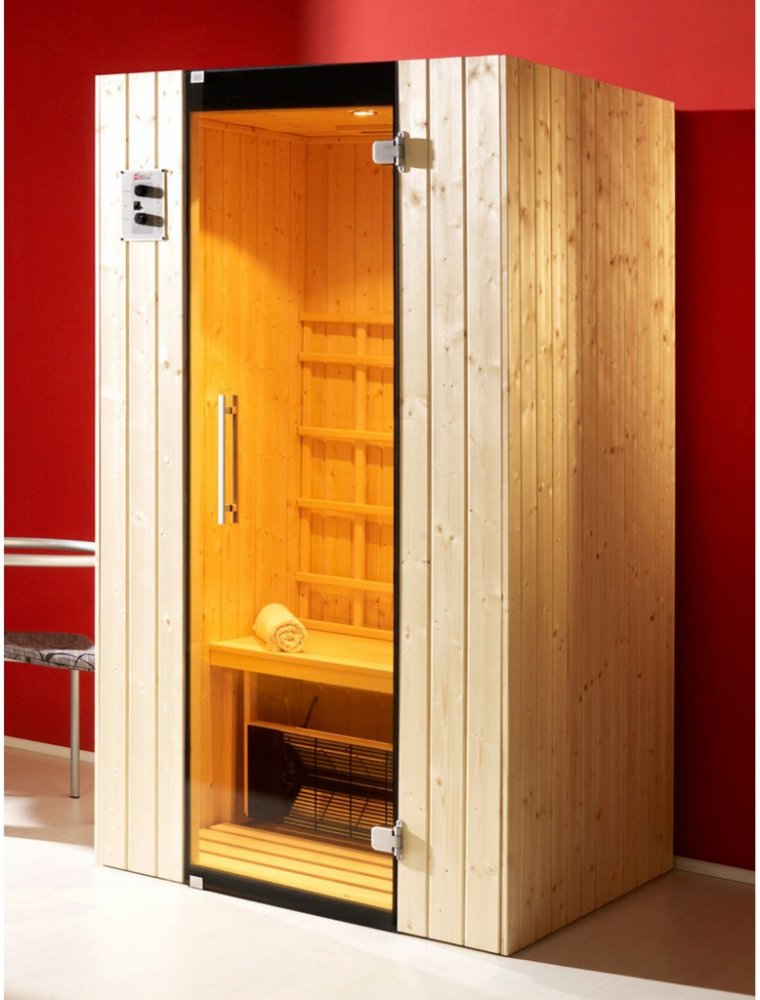 Klid a relaxace s klasickými keramickými zářiči a výhodnou přípojkou 230 V. Exkluzivní výbava a skladnost. Všeobecně: - Vnější rozměry: 108 cm x 99 cm x 190 cm (Š x H x V) Vybavení: - Celoskleněné dveře v grafitovém vzhledu: s dvoubodovým magnetickým zavíráním, lze připevnit vpravo - Stabilní lavice (hloubka 45 cm) - Integrované halogenové bodové svítidlo - Digitální ovládání - Včetně masivního podlahového prvku - Zářič: 4 keramické zářiče - Celkový výkon 1 700 W - Ergonomicky tvarovaná zádová opěrka Zabezpečení a servis: - Zářiče k přímému zapojení - Připojovací vedení - Montážní materiál, montážní návod - Minimální výška místnosti: 210 cm (obr. bez příslušenství a dekorace)