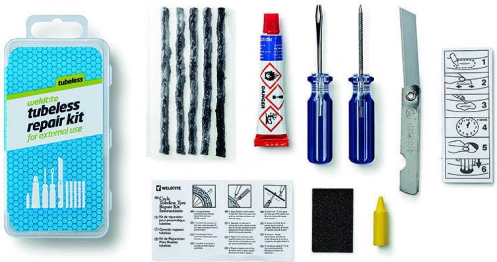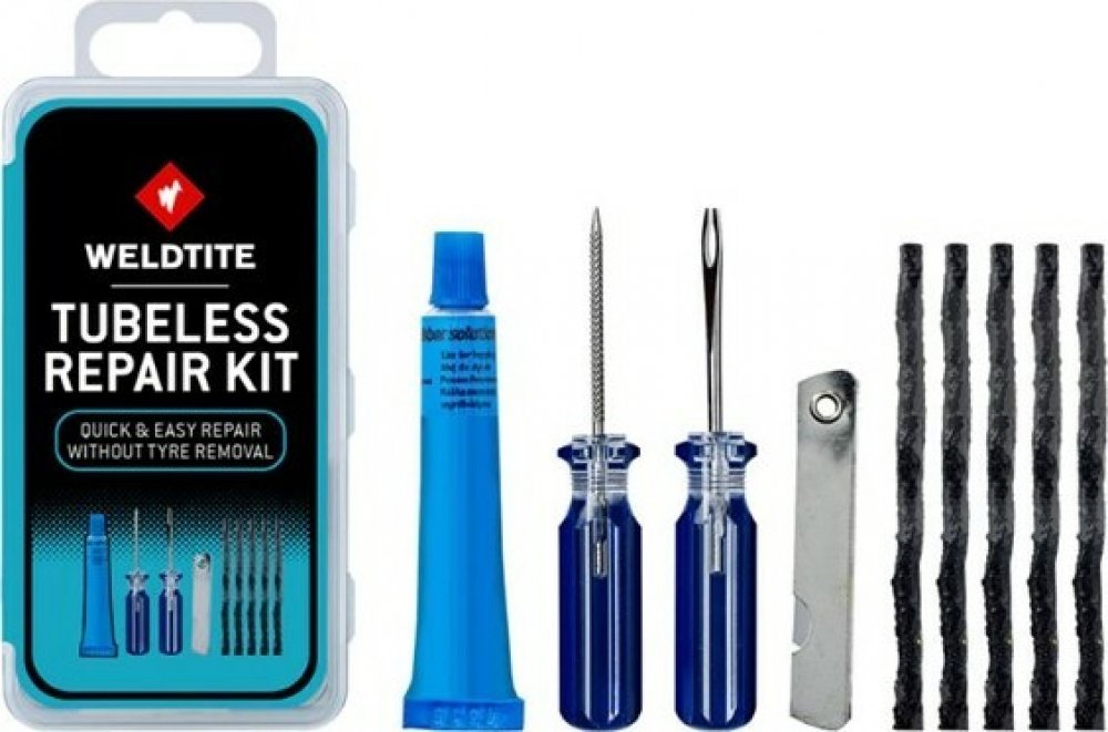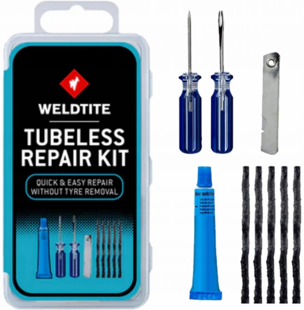 Opravná sada Weldtite Tubeless umožňuje opravit defekt bezdušového pláště, který už je kvůli velikosti nad schopnosti zacelovacího tmelu. Jestliže je otvor v plášti tak velký, že jej tmel nezacelí, stačí dovnitř vpravit opravnou šňůru, zalepit ji a ta se uvnitř roztáhne natolik, že zbytek už zařídí tmel. Výhodou je možnost opravy z vnější strany pláště, není tedy nutné jej demontovat, lepit zevnitř a mít ruce ulepené od těsnicího tmelu. Všechny nástroje pro úpravu otvoru v plášti a instalaci opravné šňůry jsou v sadě.