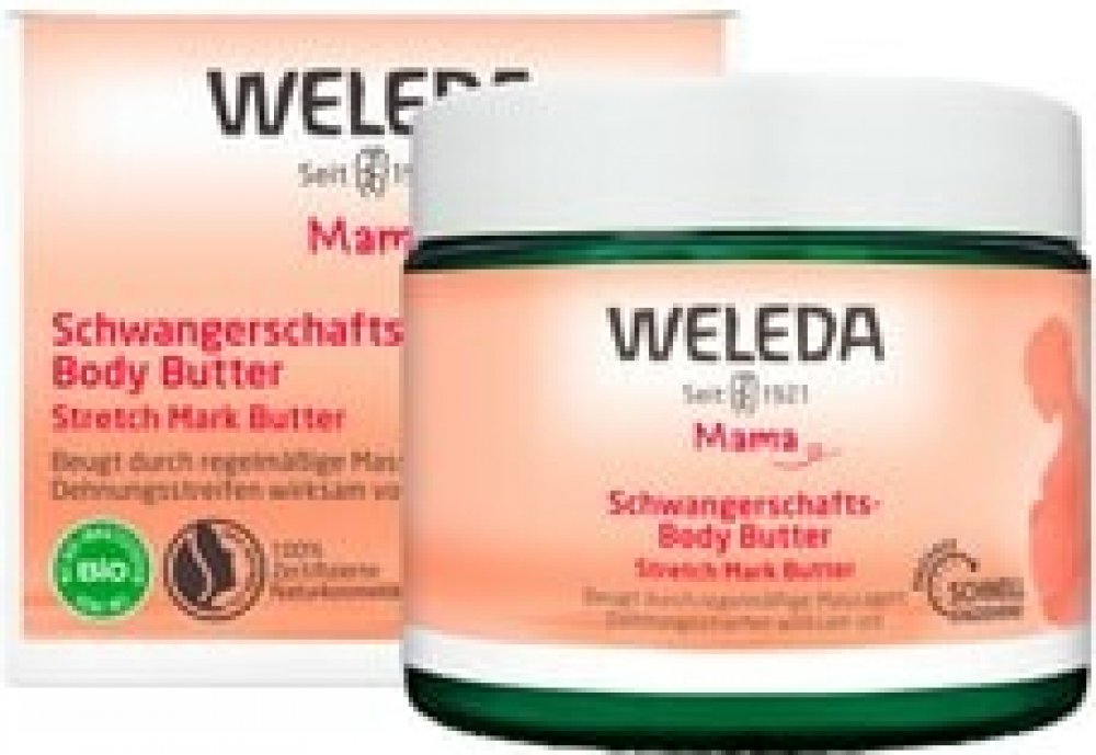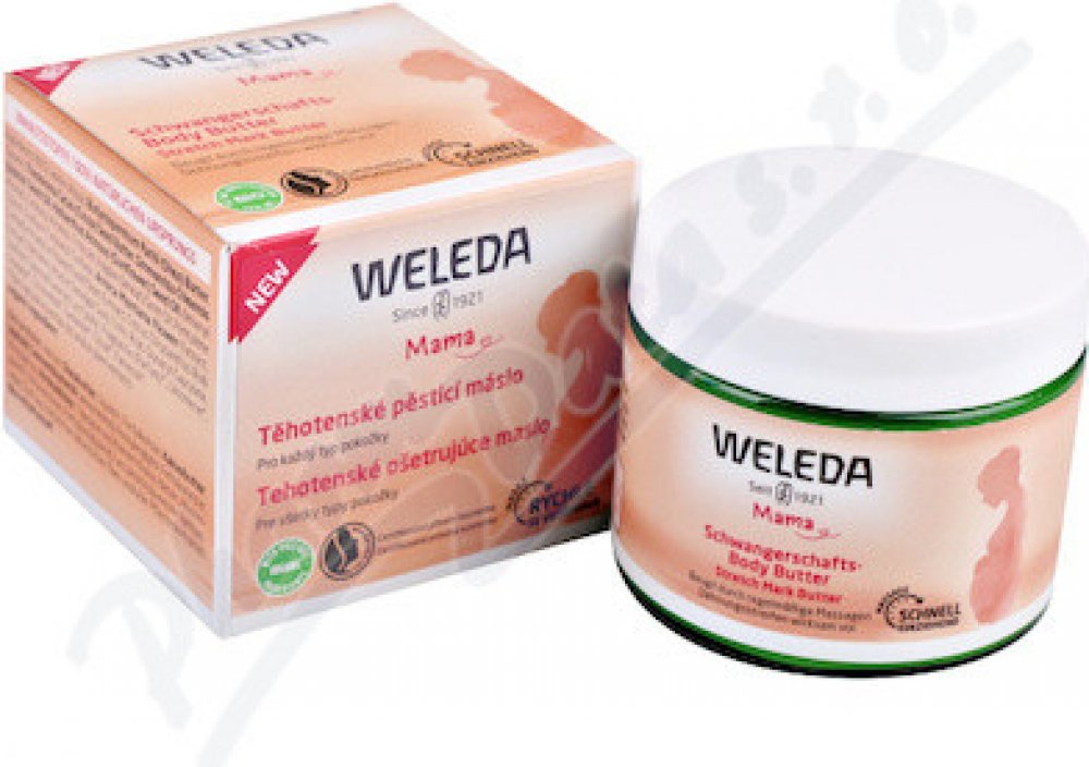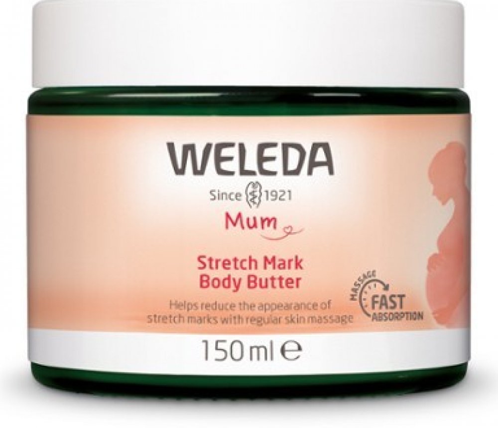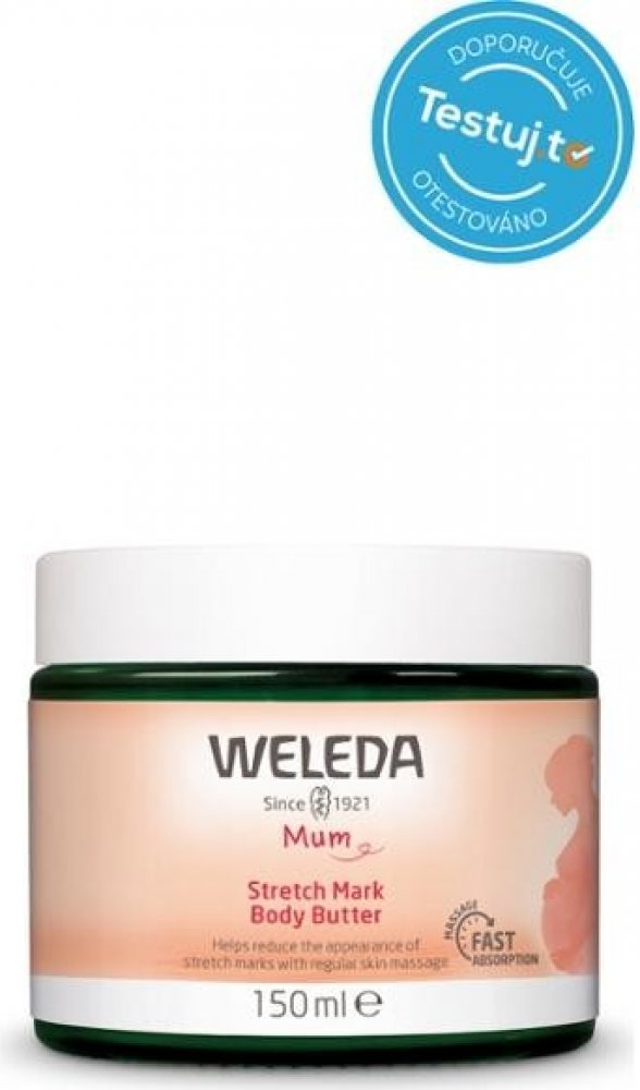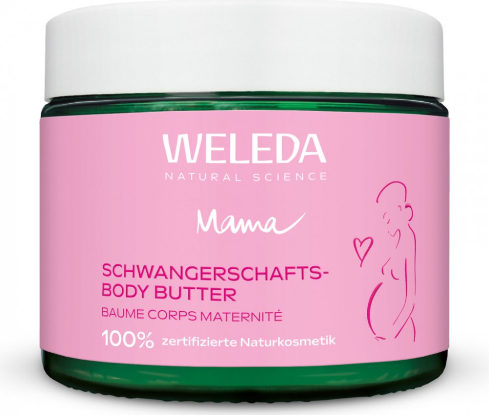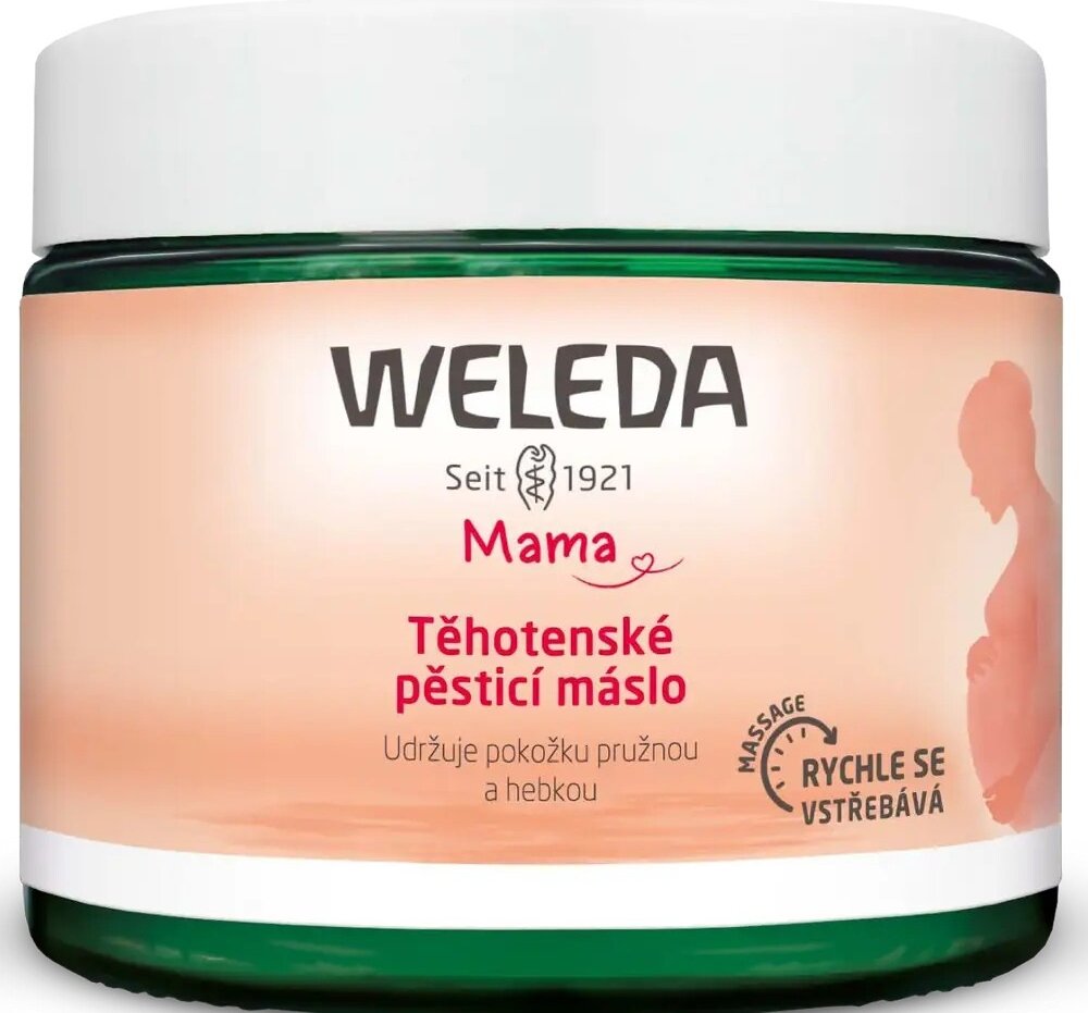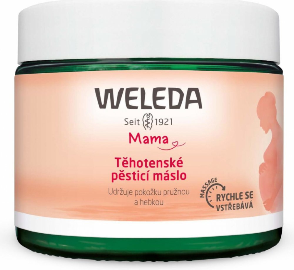 Těhotenské pěsticí máslo od Weledy podporuje přirozenou elasticitu pokožky a v rámci masáží pomáhá předcházet vzniku strií. Rostoucímu těhotenskému bříšku poskytuje veškerou péči, kterou si zaslouží, a to I když na sebe máte jen chvilku času. Po masáži se můžete ihned obléknout, textura produktu se do pokožky rychle vstřebá a nezanechá tak stopy na oblečení. Máslo, jež bylo vyvinuto ve spolupráci s lékárníky a porodními asistentkami, obsahuje extrakt z pupečníku asijského, organické bambucké máslo, výživné kakaové máslo a cenné rostlinné oleje. Jeho jemná květinová vůně skládající se z růží, neroli a myrhy zklidní vaši mysl a pomůže vám se uvolnit. Spojte se se svým miminkem díky příjemné masáži a 100% přírodnímu pěstícímu máslu.