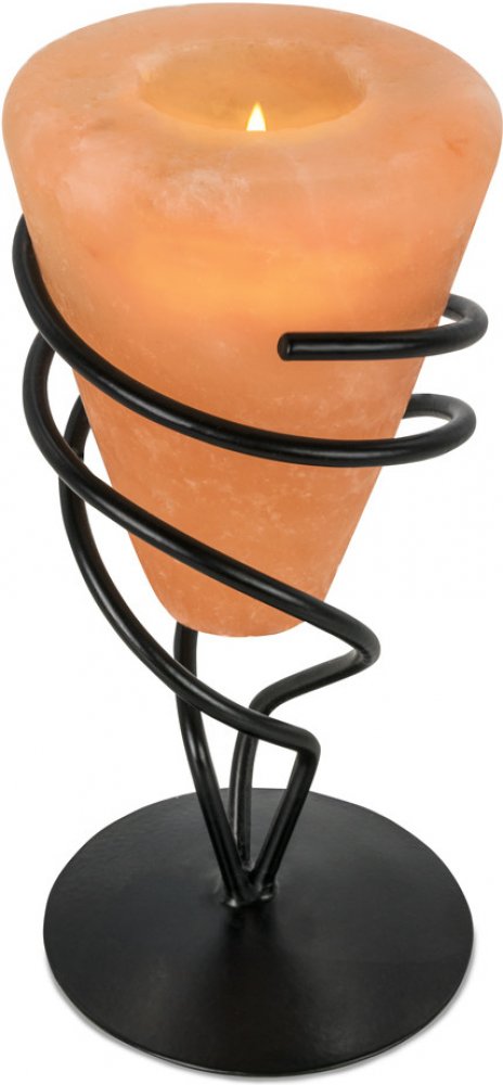 Solný svícen Kalich je krásná dekorace do bytu či domu. Svícen je vyřezávaný z himalájského solného krystalu a je zasazen do kovového držáku ve tvaru kalichu. Himalájská sůl se používá ve Feng Shui jako prostředek k čištění energie prostoru i těla. Plamen solný kámen prosvěcuje a kromě estetické funkce pomáhá zmírňovat zdravotní potíže. Výška svícnu cca 20 cm.