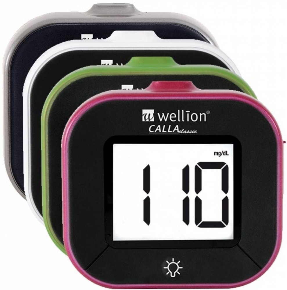 Wellion CALLA Light – Dokonalost se skloubí s designem Model velmi vhodný pro seniory - jednoduchá obsluha. Moderní design, snadné zacházení Šikovný, se zvláštním tvarem, perfektně čitelným displejem, neklouzavým povrchem. Navíc s praktickými vlastnostmi usnadňuje život diabetikům. Vůbec poprvé lze zobrazovat průměry za 1, 7, 14, 30, 60 a 90 dnů. Tyto informace napomáhají lékaři i pacientovi lépe vyhodnocovat hladiny cukru v krvi. Uživatel může nastavit 3 různé druhy alarmu jako upomínky na měření hladiny cukru v krvi. Dále si může pacient nastavit limity hladiny cukru v krvi. Všechny výsledky, které překročí tyto limity, jsou na displeji vyznačeny. Tyto alarmy hypo a hyperglykemických stavů jsou takto pro pacienta citlivější a přispívají k tomu, že pacient udělá správné kroky k nápravě tohoto stavu. Paměť glukometru Wellion CALLA Light může obsahovat posledních 500 výsledků včetně data a času měření. Jsou snadno přístupné ovládacími tlačítky. Díky silnému podsvícení a velkým číslicím jsou výsledky na displeji velmi snadno čitelné. Tato výrazná čitelnost usnadňuje diabetikům každodenní život. Obsah sady Wellion CALLA Light 1 pouzdro 1 autolanceta 10 lancet 10 testovacích proužků Technické parametry