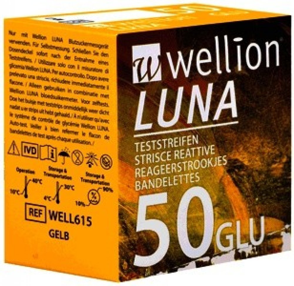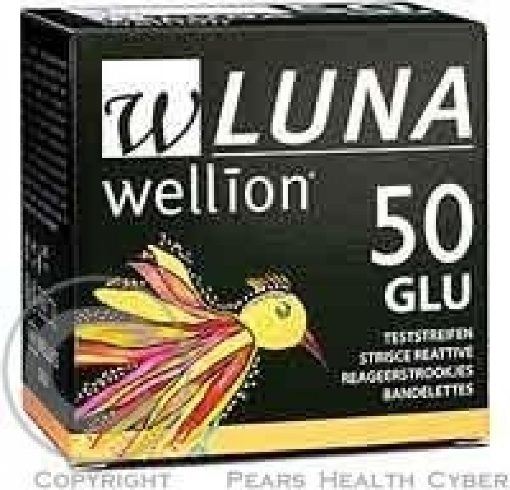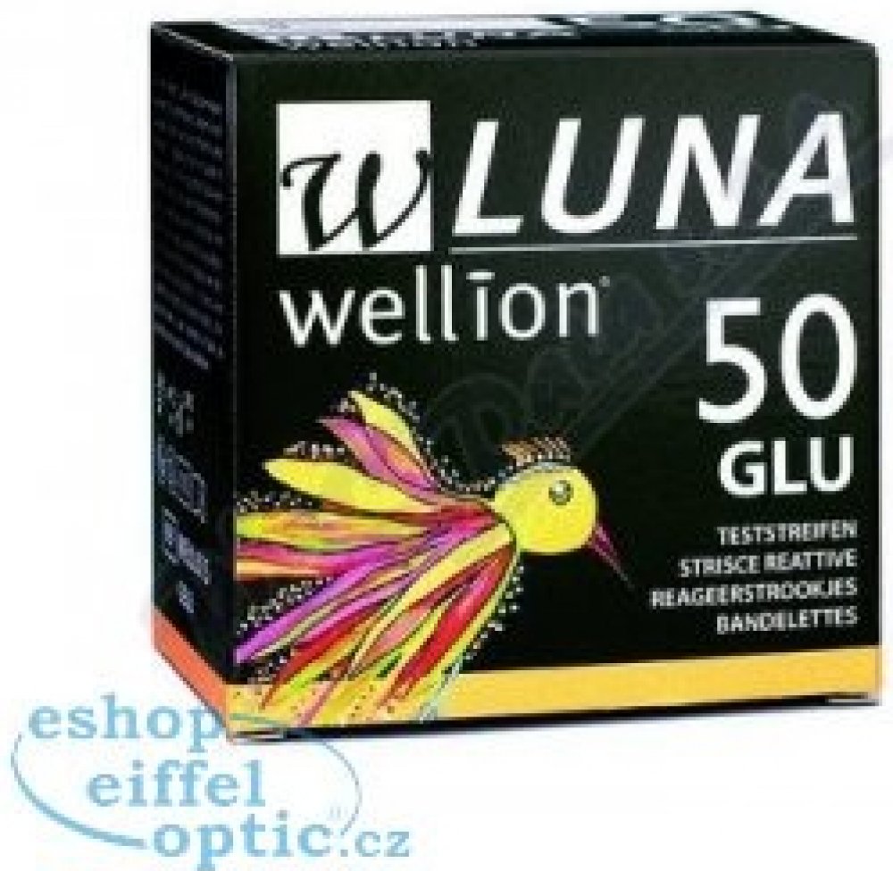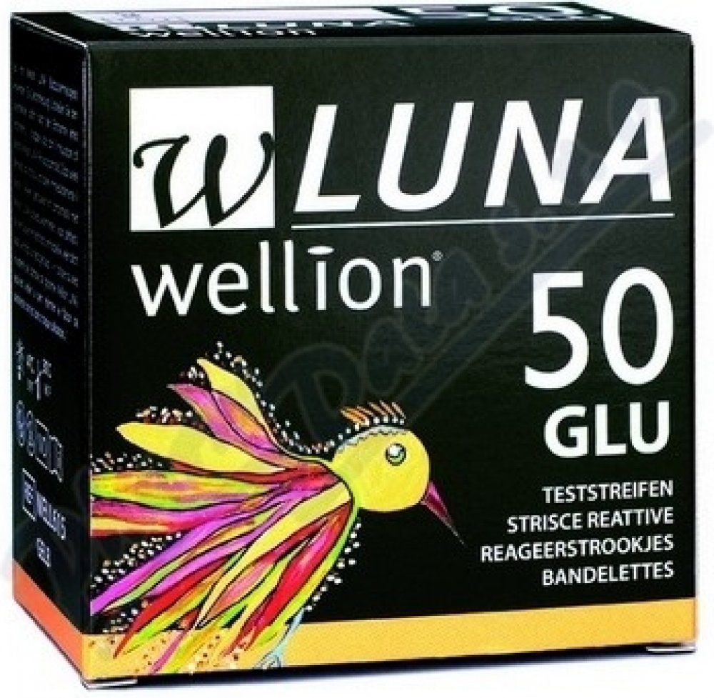 Proužky se vyrábějí v několika různých vrstvách obsahujících elektrody, které byly na proužek naneseny speciální technologií. Biologický substrát – oxidáza glukózy – je vysoce přesným dávkovacím zařízením umístěn v reakční zóně testovacího proužku. Oxidáza glukózy je enzym, který velmi specifickým způsobem reaguje s glukózou obsaženou v krvi. Během této reakce je generován elektrický proud, který je přepočítán a zobrazen na displeji přístroje jako obsah cukru v krvi. Testovací proužky Wellion LUNA jsou vybaveny tzv. technologií BEZ KÓDOVÁNÍ, což zaručuje uživatelům vysokou bezpečnost měření. Během vývoje testovacích proužků Wellion LUNA jsme se snažili vyrobit testovací proužky vhodné velikosti, umožňující tak snadné vyjímání proužků z nádobky a jejich jednoduché vložení do testovací štěrbiny přístroje. Konec testovacího proužku, který nasává kapku krve do reakční zóny, je dostatečně vzdálen od samotného přístroje. Tím se zabrání potřísnění přístroje krví. K použití s přístrojem Wellion LUNA.