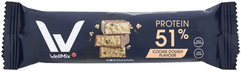 Proteinová tyčinka s příchutí 51 % sušenkového těsta. Tyčinka obsahuje 51 % bílkovin a pravé kakaové kousky.