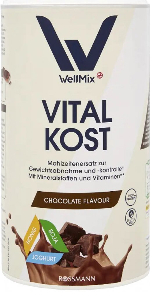 WellMix Vital Shake s čokoládovou příchutí je vaše vyvážené jídlo s bílkovinami ze sóji a mléka, esenciálními aminokyselinami a mnoha pro tělo důležitými živinami: