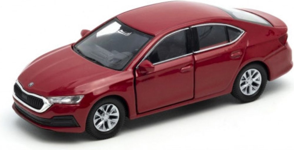 Kovový model auta Škoda Octavia IV v červené barvě a měřítku 1:38 značky Welly.Model má kovové osy kol a detailní zpracování karoserie včetně interiéru automobilu. Na modelu se otvírají přední dveře.