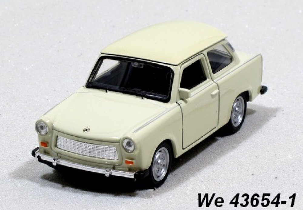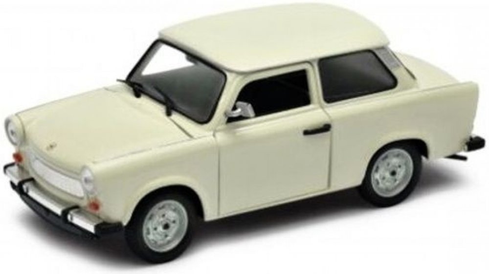 Detailní model vozu Trabant je vyroben z kovu a plastu a má otevíratelné dveře. Dodáváno v různobarevné papírové krabičce s plastovým průhledem.   Hlavní vlastnosti:kovová karoserieotevíratelné dveře