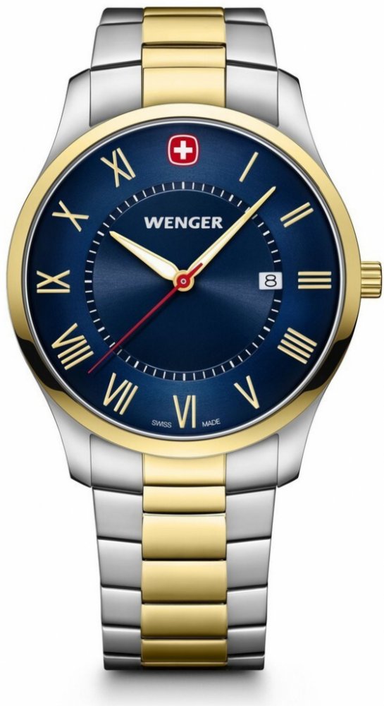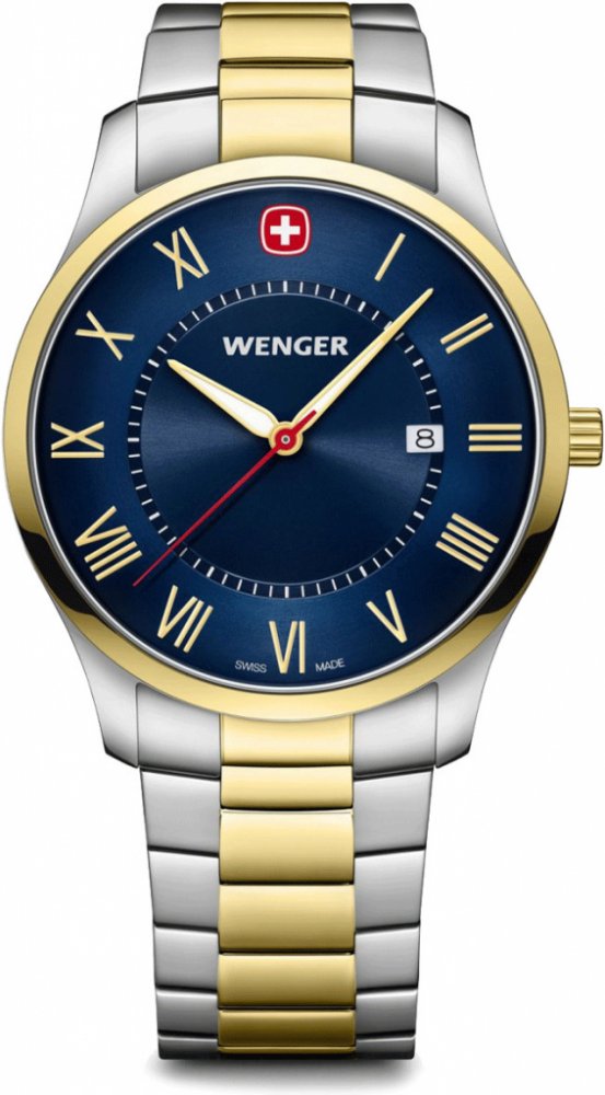 Wenger analogové ocel ocel 50 m bateriové 109.98 g minerální elegantní pánské bateriové - quartz City Classic kulaté vícebarevná modrá posuvná spona 2.2 cm pro běžné použití (30–50 m) s trvalým svícením (tritium/Super-LumiNova) s nenáročnou údržbou (quartz) bez chytrých funkcí na ruku švýcarské s římskými číslicemi ocel 4.2 cm střední pevná ocel 8.1 mm 22.0 mm 8.1 mm 42 mm 42.0 mm se superluminou