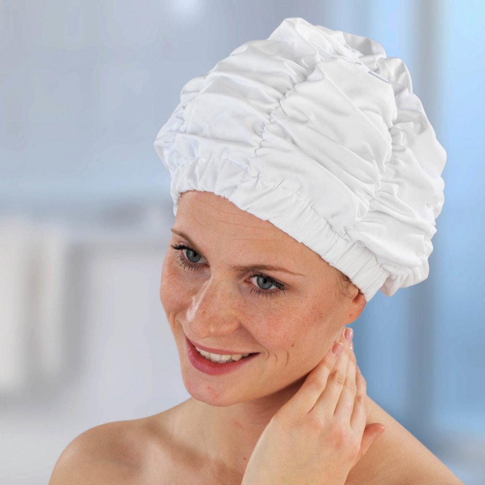 Tato čepice je ideální pro pohodlné sprchování či koupání. Udržuje vlasy suché a šetří spoustu času a námahy při úpravě účesů. Čepice má elastický pás, který zajišťuje ideální přizpůsobení. Díky tomu je velmi pohodlná na nošení. Materiál je rychleschnoucí polyester s nepromokavou podšívkou. Sprchovou čepici Lisa lze prakticky bez problémů prát a čistit při 30 °C. Rozměry: Ø 25 cm. Čepice do sprchy...