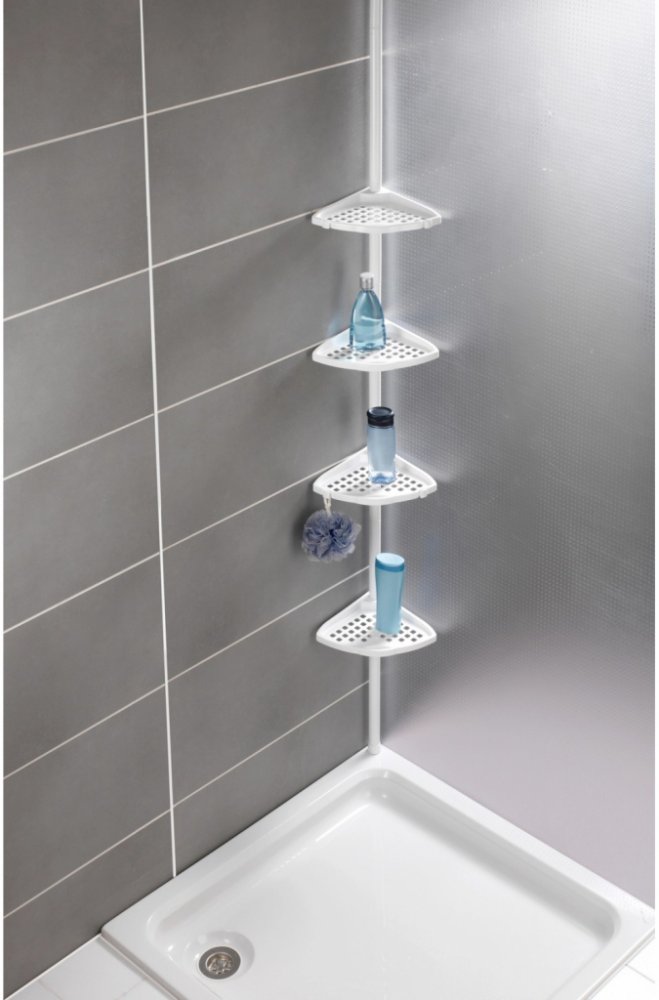 Wenko Teleskopický regál do sprchy Opal ocel, bílá, 19,5 x 85-250 x 26 cm