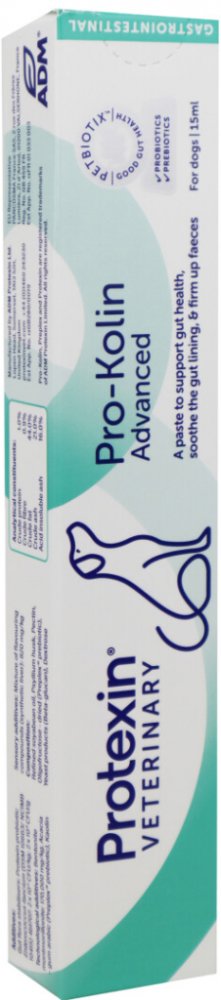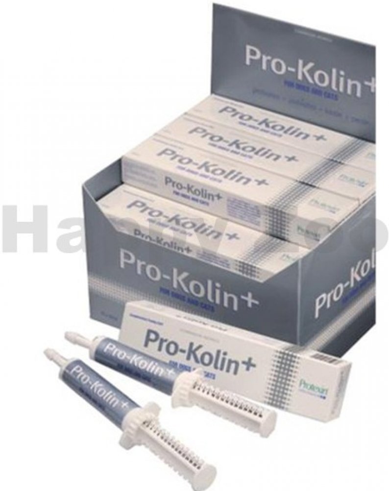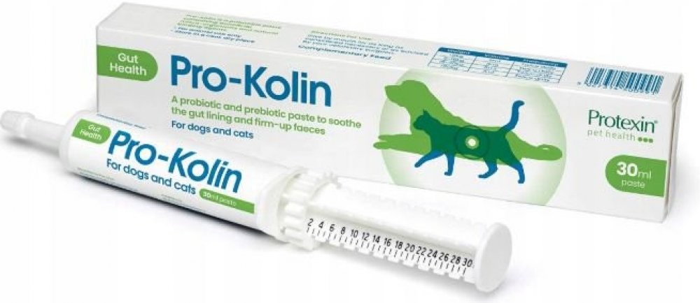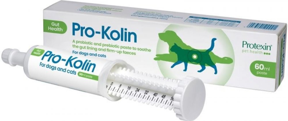 PRO-KOLIN pro psy a kočky je probiotický preparát s výbornou chutí, dobře přijímaný zvířaty, obsahující kaolin a pektin, jejichž absorpční a zklidňující vlastnosti jsou používány už léta pro léčbu průjmů. Prospěšné mikroorganismy obsažené v přípravku Pro-Kolin se vyskytují přirozeně ve střevech všech zdravých zvířat. Tyto mikroorganismy kolonizují nedospělé střevo nebo znovu osidlují a upravují poměry ve střevě narušeném. Zároveň brání usídlení patogenních mikroorganismů mechanismem který se popisuje jako "kompetitivní exkluze". Tento produkt obsahuje navíc kaolin jako přírodní vyvazující substanci a pektin, který zklidňuje střevní výstelku během trávících poruch. Pro-Kolin pro psy a kočky byl vyvinut jako léčivo první volby během mírnějších forem enteritid.